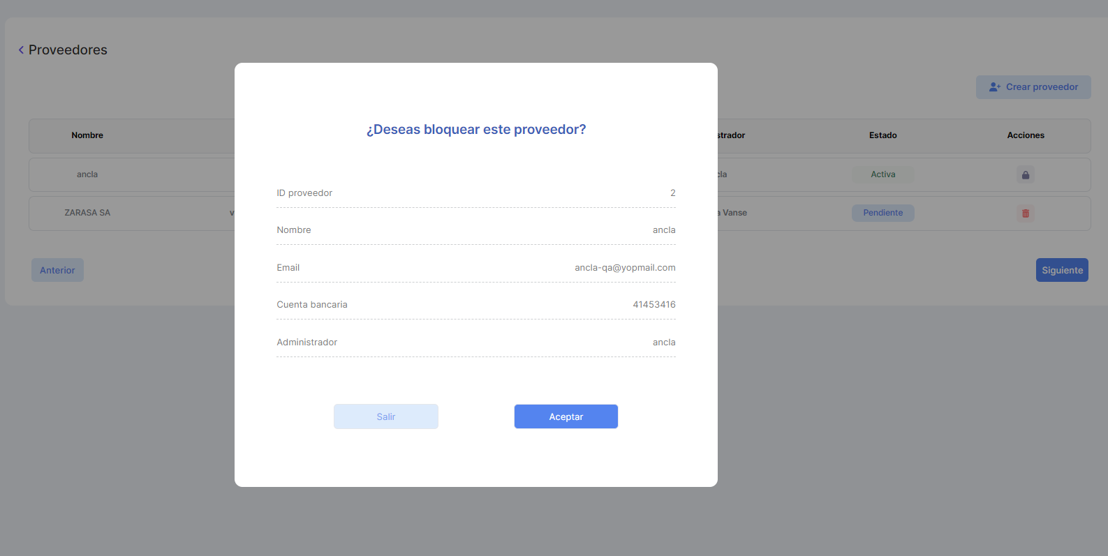 Cuando se quiere bloquear un Proveedor se debe eliminar el ID de Proveedor