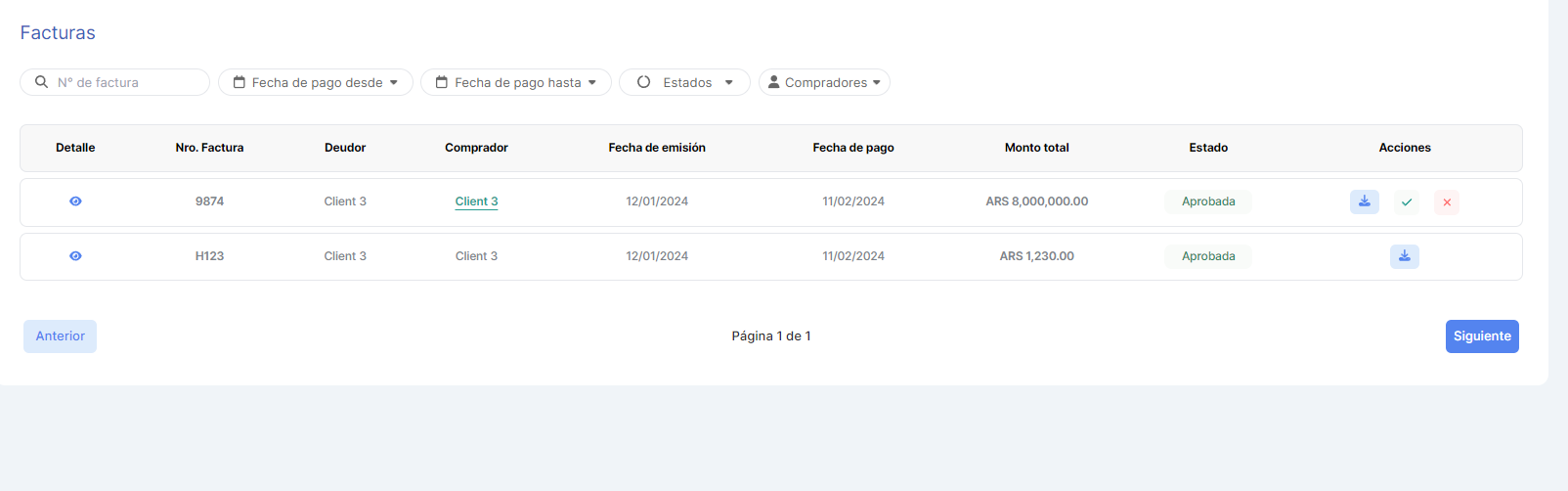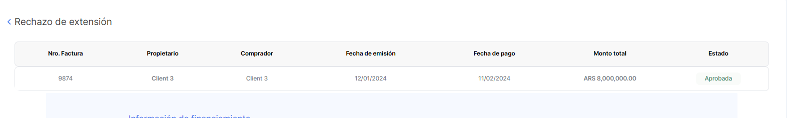 Al seleccionar Detalle o las Acciones Aprobar o Rechazar (mismos datos)