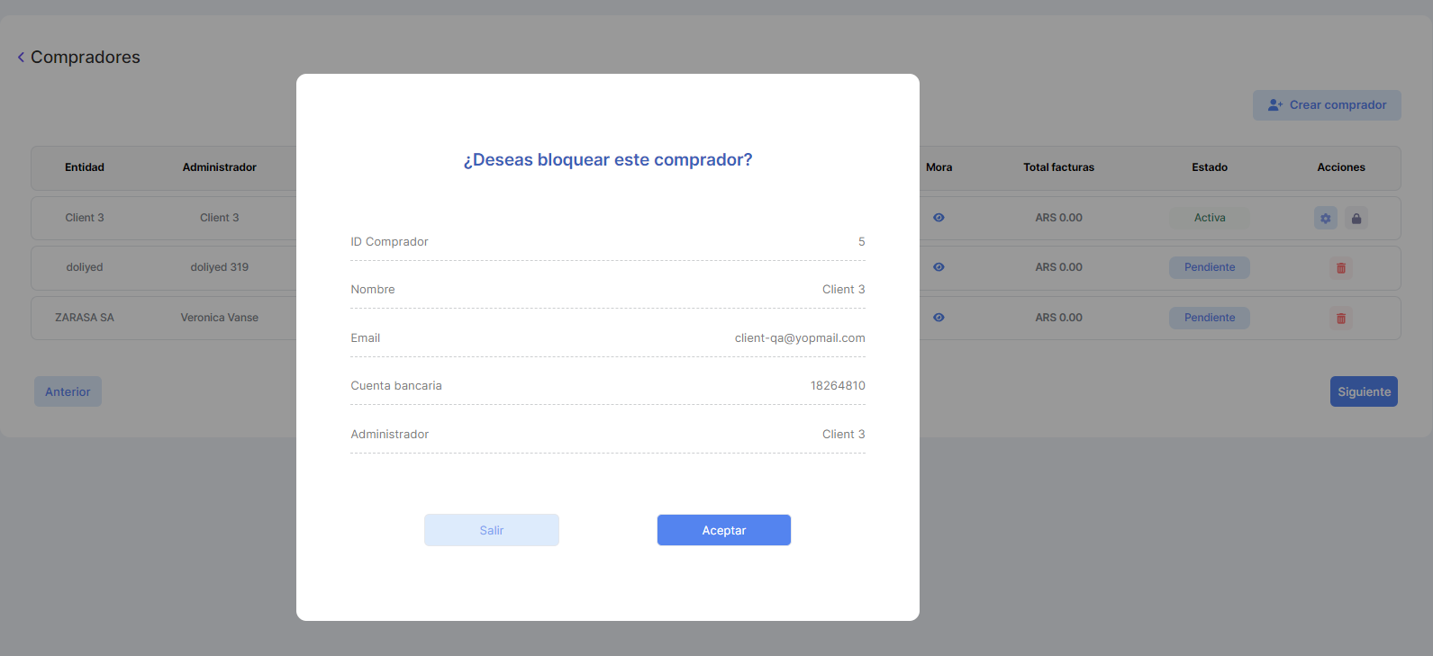 Cuando se quiere bloquear un Comprador se debe eliminar el ID de Comprador