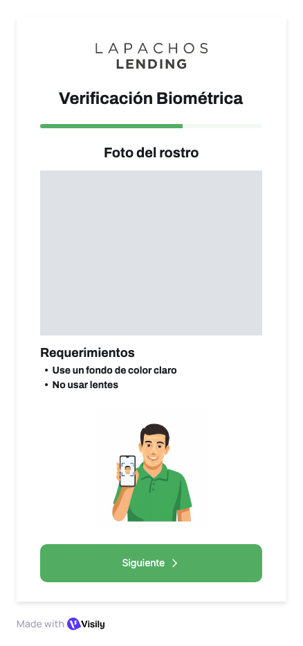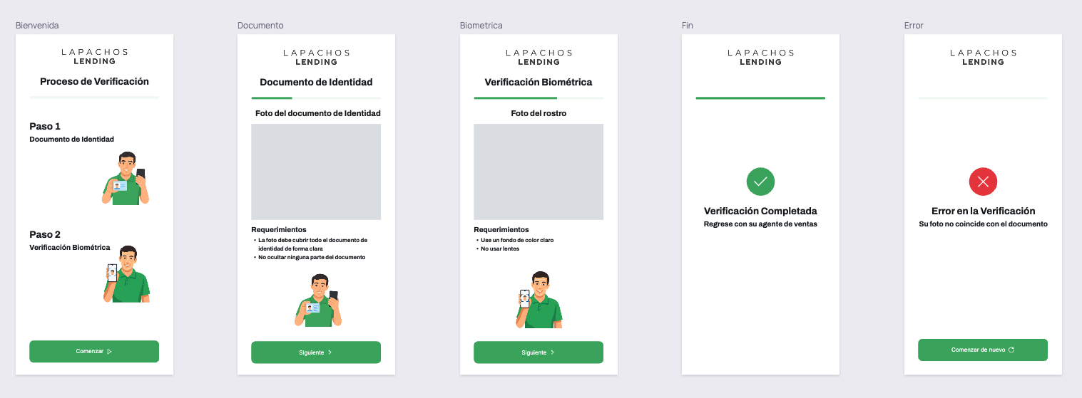 Frontend | Web app o módulo embebido en el flujo de registro | Solicita al usuario subir las fotos del documento y selfie. Muestra resultados y mensajes de validación. |