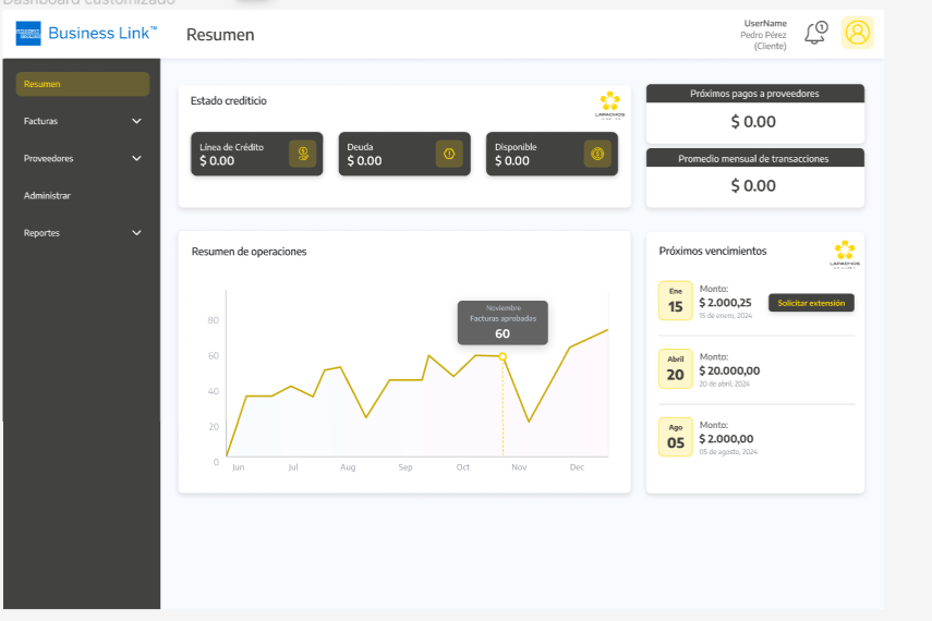 Calculo y presentación de comisiones y fees con montos y fecha de pago por parte del Lender