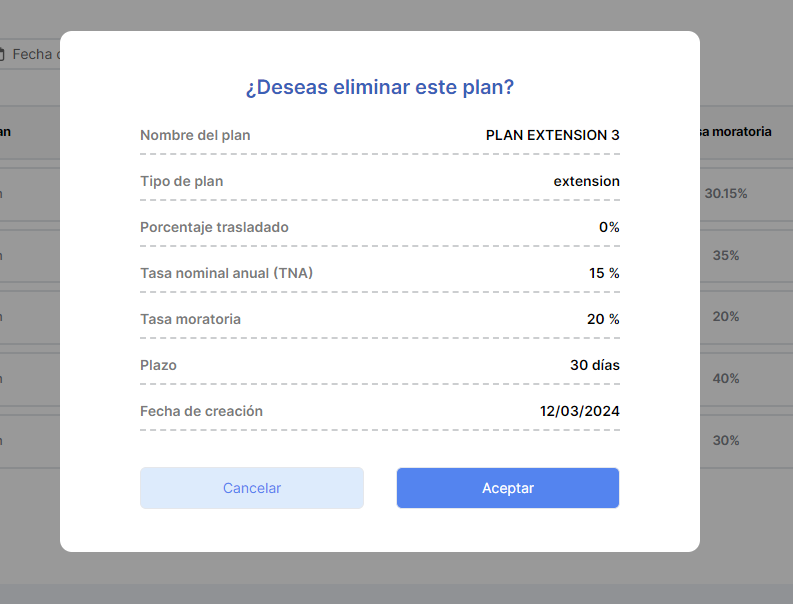 Operación: Extensión (extender plazo de pago antes de la fecha de vencimiento de la operación anterior: base o una extensión anterior).