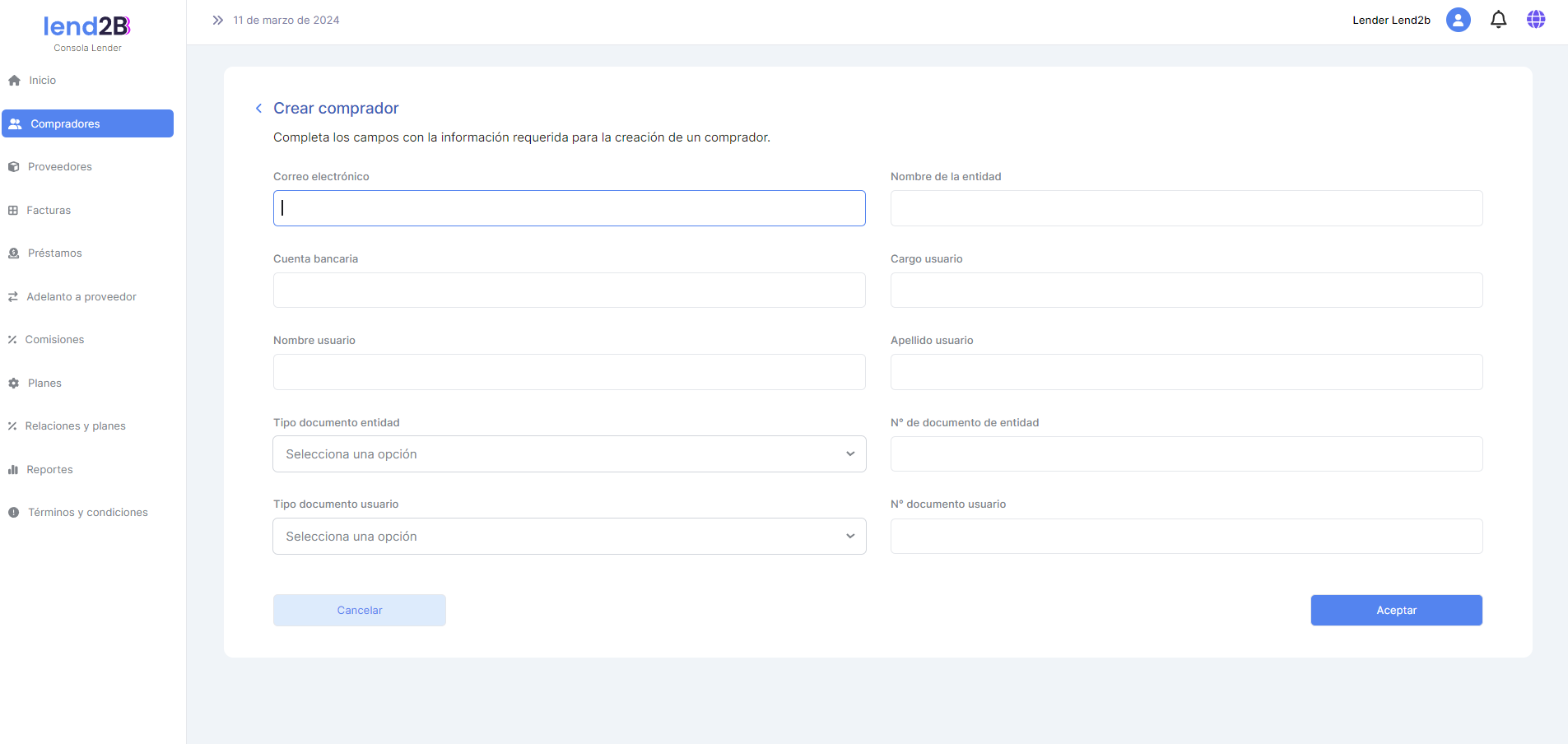 Fee procesamiento Base Lend2b