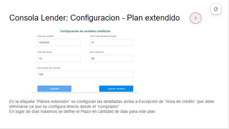 Hay que definir en la siguiente pantalla, como en las acciones poder configurar Linea de crédito y asignar varios planes de financiación. Estos planes se cargarán en el apartado “Configuración” de la consola del Lender en Lend2B y luego se hará la asociación de los planes a una relación Proveedor-Comprador.