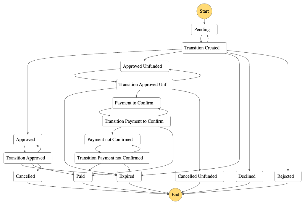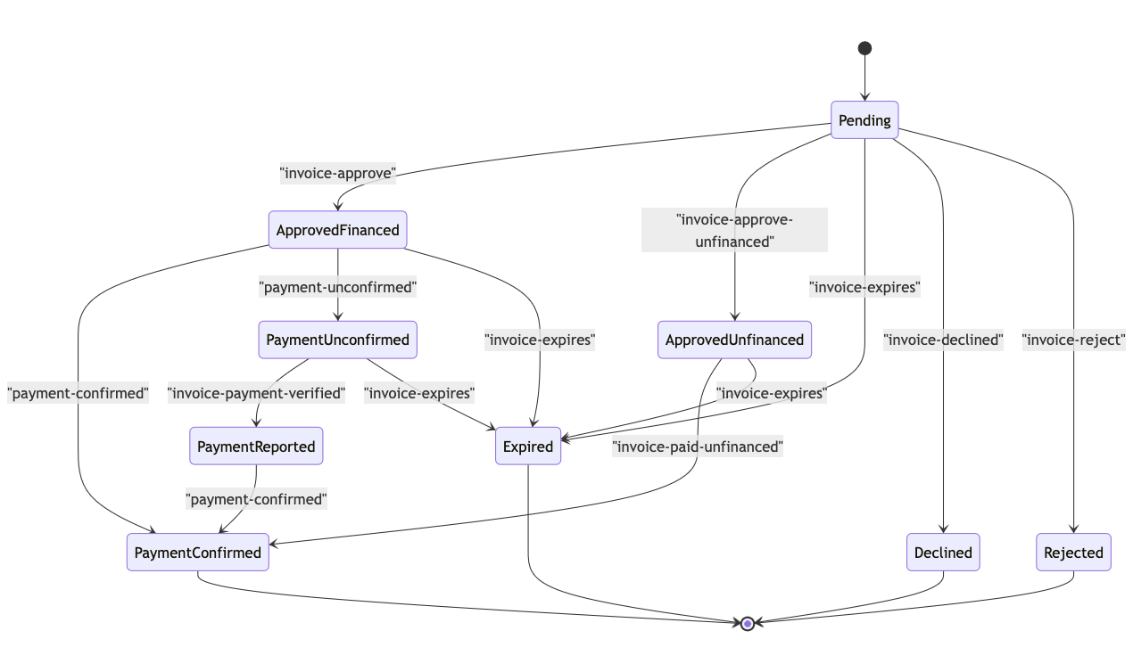 ApprovedUnfinanced --> PaymentConfirmed : "invoice-paid-unfinanced"