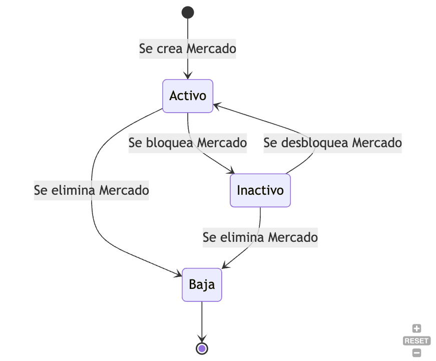 Eliminado: Indica que el mercado ha sido removido del sistema. Este estado es final y no tiene transiciones.