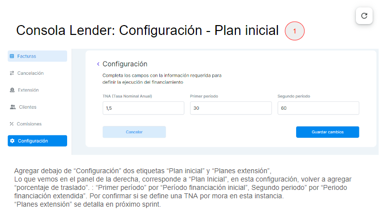 Para este plan se definirá cuales son las condiciones para refinanciar deuda. Este punto esta por validar con el lender. Pero a priori suponemos que las reglas serán las siguientes.