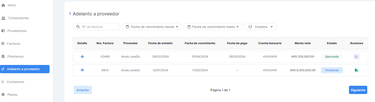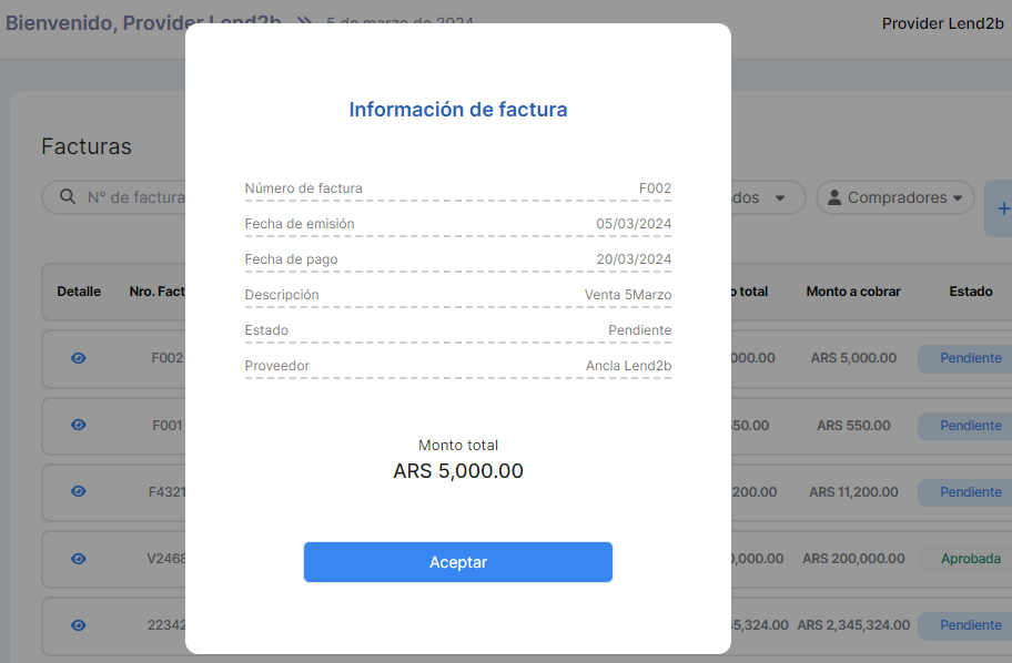 ver detalle de factura: cuando vemos el detalle de la factura, con la vista del Proveedor tenemos: