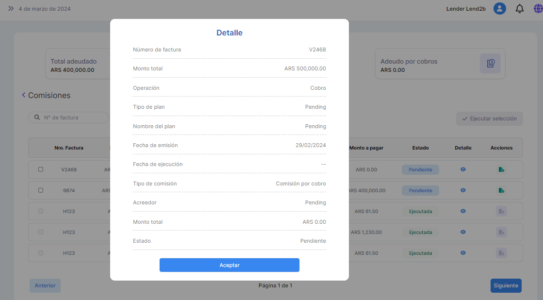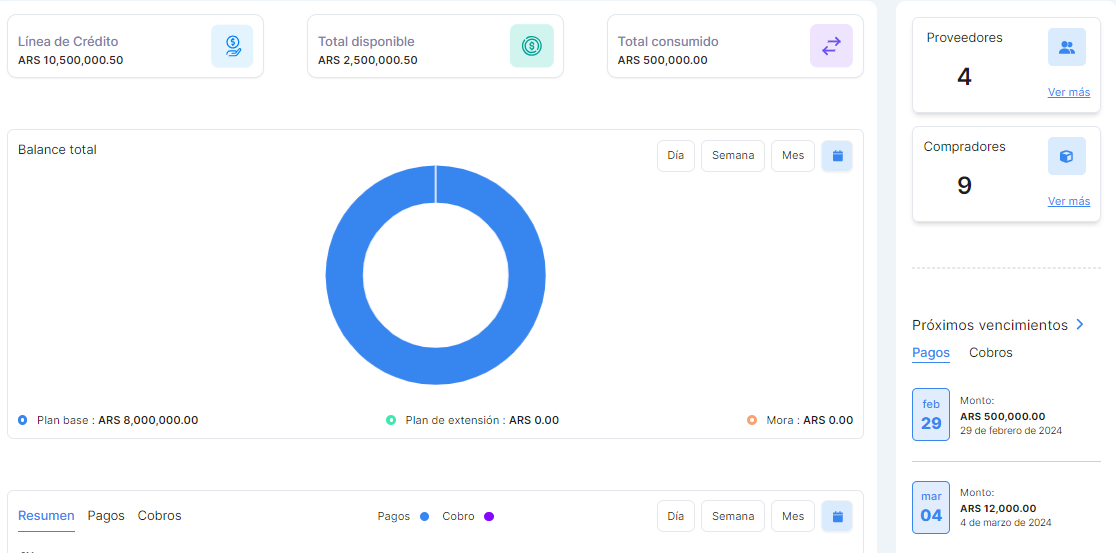 próximos vencimientos: hoy es 4/3 y muestra próximo vencimiento 29/2 por $500000.