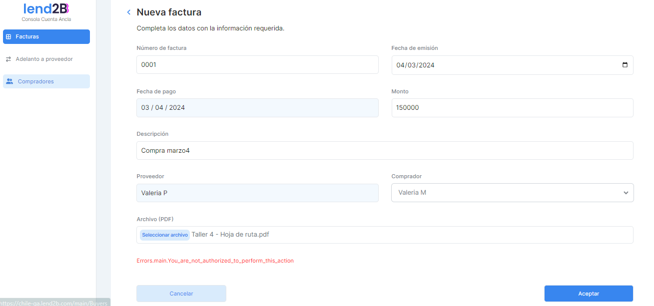 Al cargar una nueva factura, para asignarla a un Comprador deben solo mostrarse los compradores que tiene relación comercial activa
