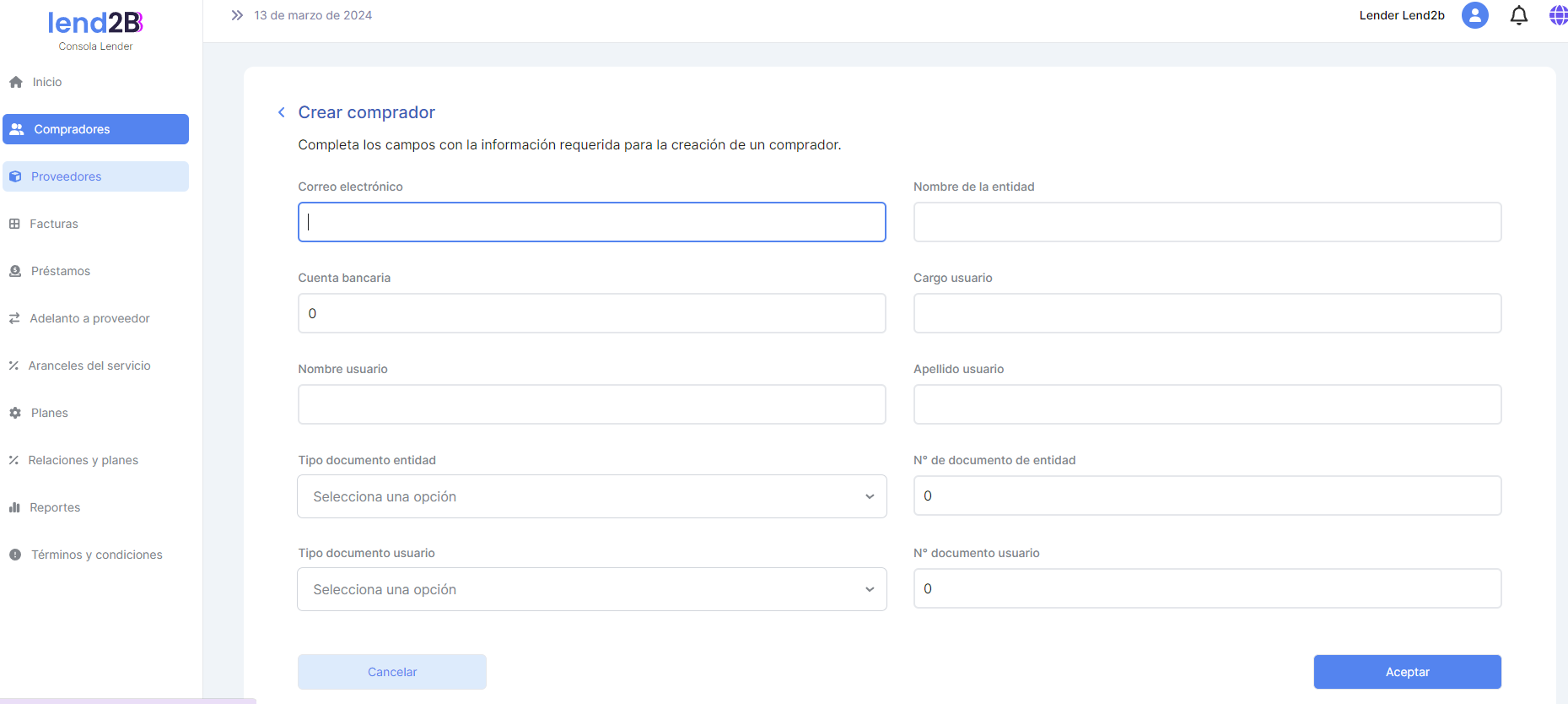 Fee procesamiento Base Lend2b