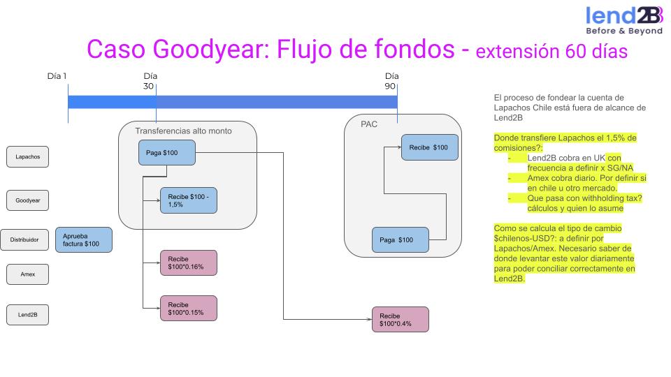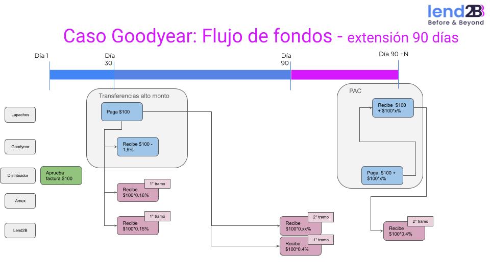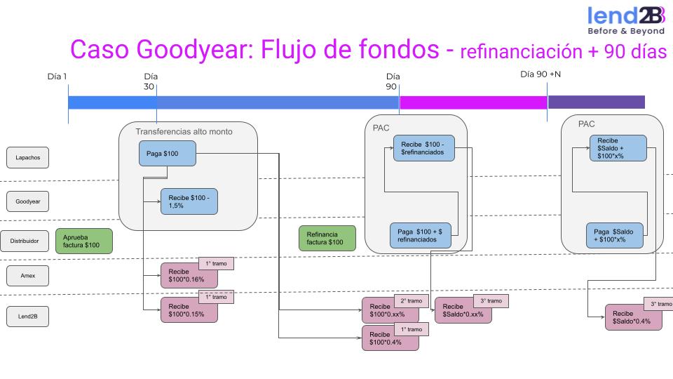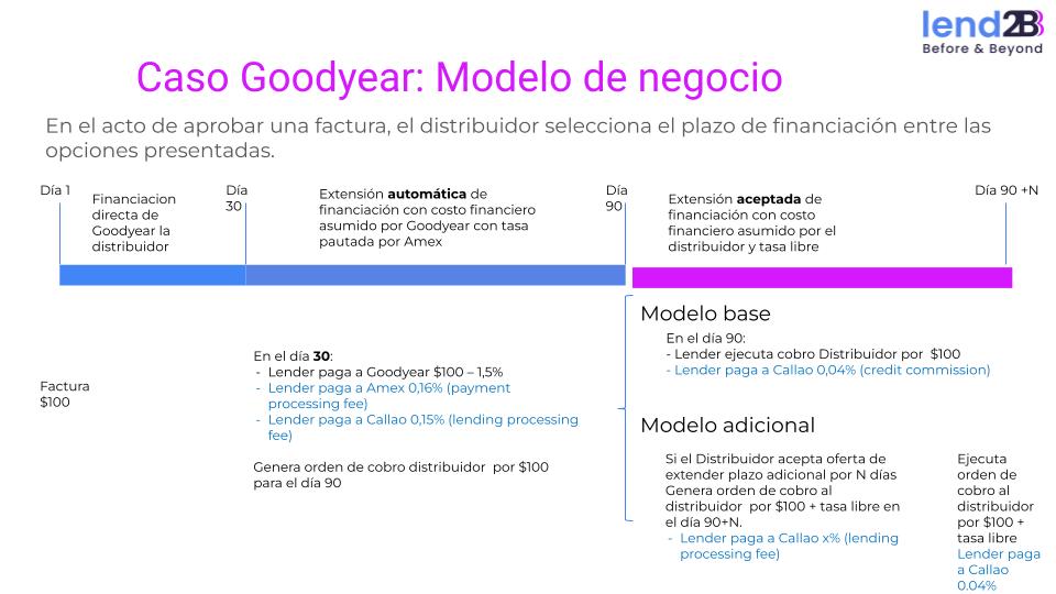 Modelo Goodyear | En el tramo azul el distribuidor puede entrar en mora, en el día 91 pero hasta ese día puede entrar en mora. ¿el 0.4 es sobre el capital o sobre capital mas intereses. ? A traves de que consola o interfaz el distribuidor pide la refinanciación. | ||