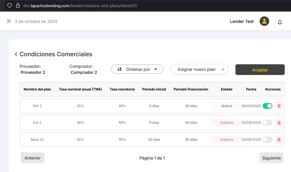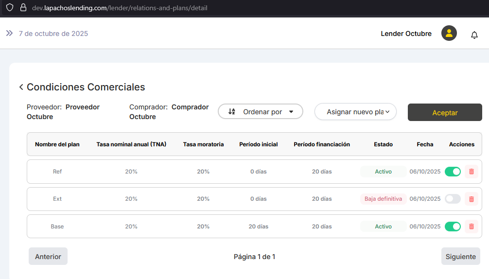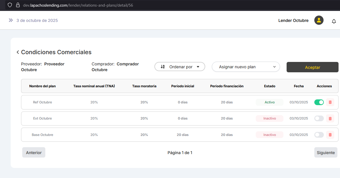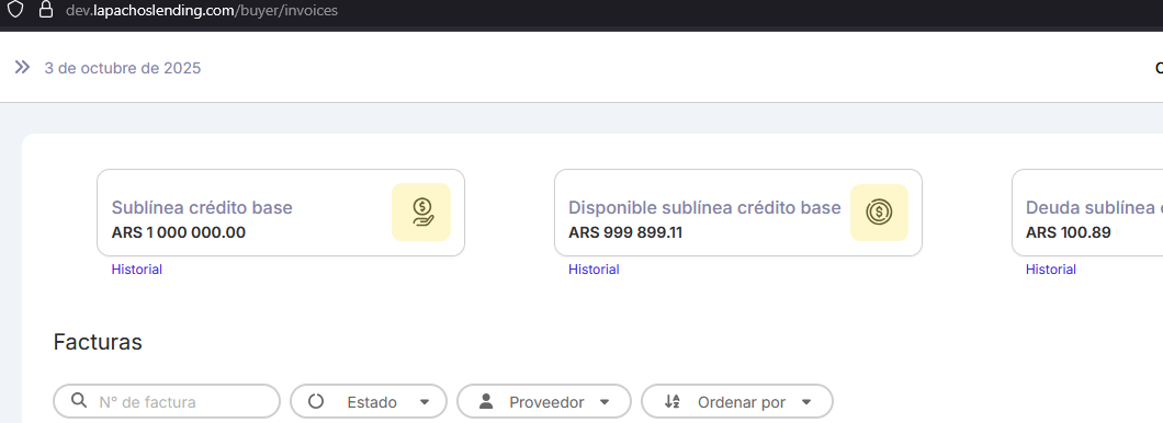 Backend: Tanto en el Lender como en el Comprador no se reestablecen los valores de Total consumido y Deuda sublínea crédito base