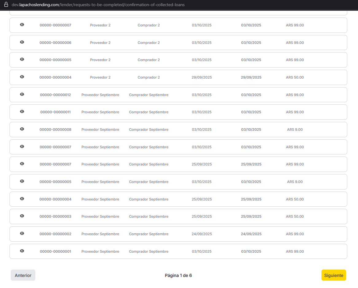 Backend: Revisar paginación de Confirmación de cobros. Llega toda la data del backend y en el frontend se listan 6 paginas y todas las paginas contienen los mismos registros.