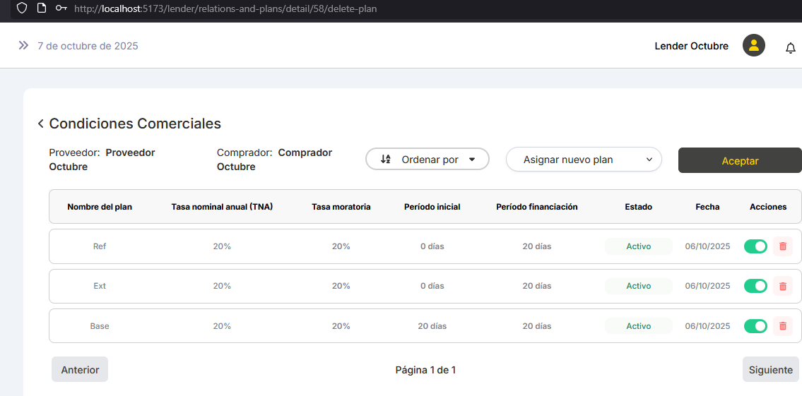 Botón de eliminar plan dentro de detalle de relaciones comerciales no hace nada.