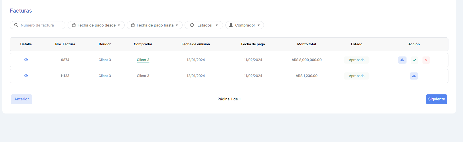 En la Consola del Lender la Factura queda en estado Pendiente hasta tanto sea aceptada por el mismo
