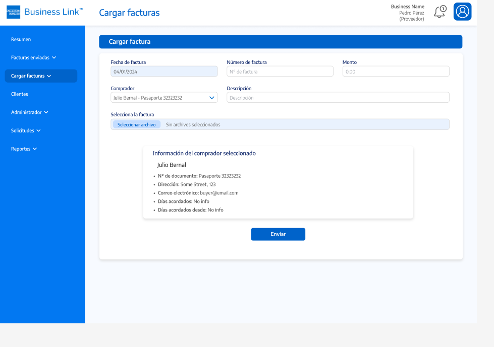 Actualmente la plataforma prevé que el Proveedor cargue un instrumento comercial (Factura) en su Consola de ABL asignándola a un Comprador.