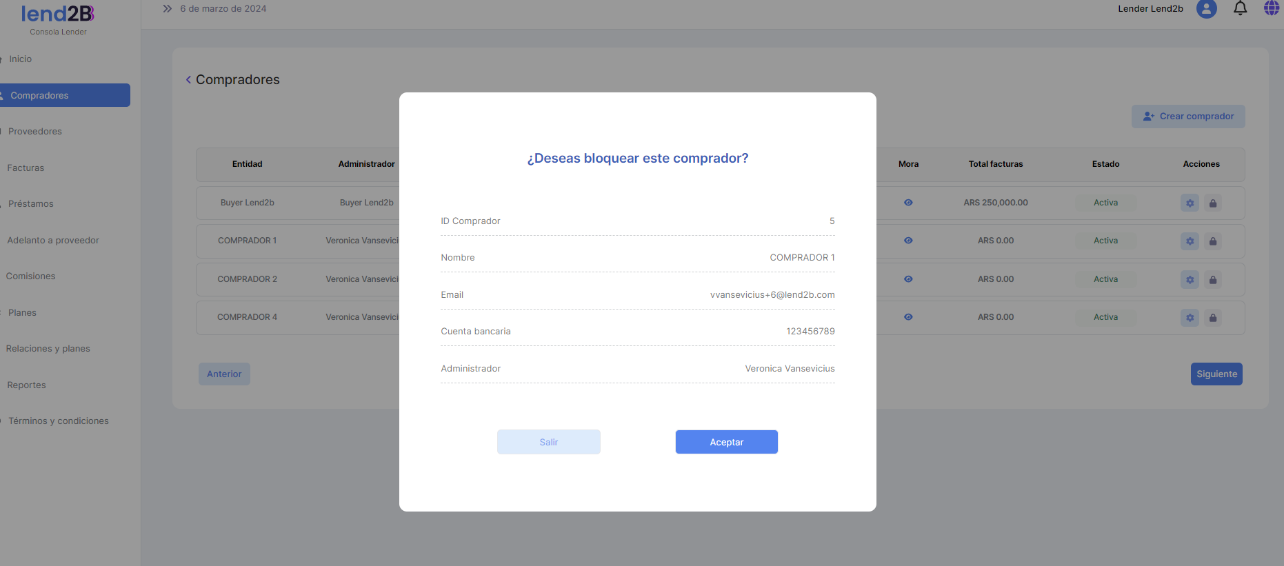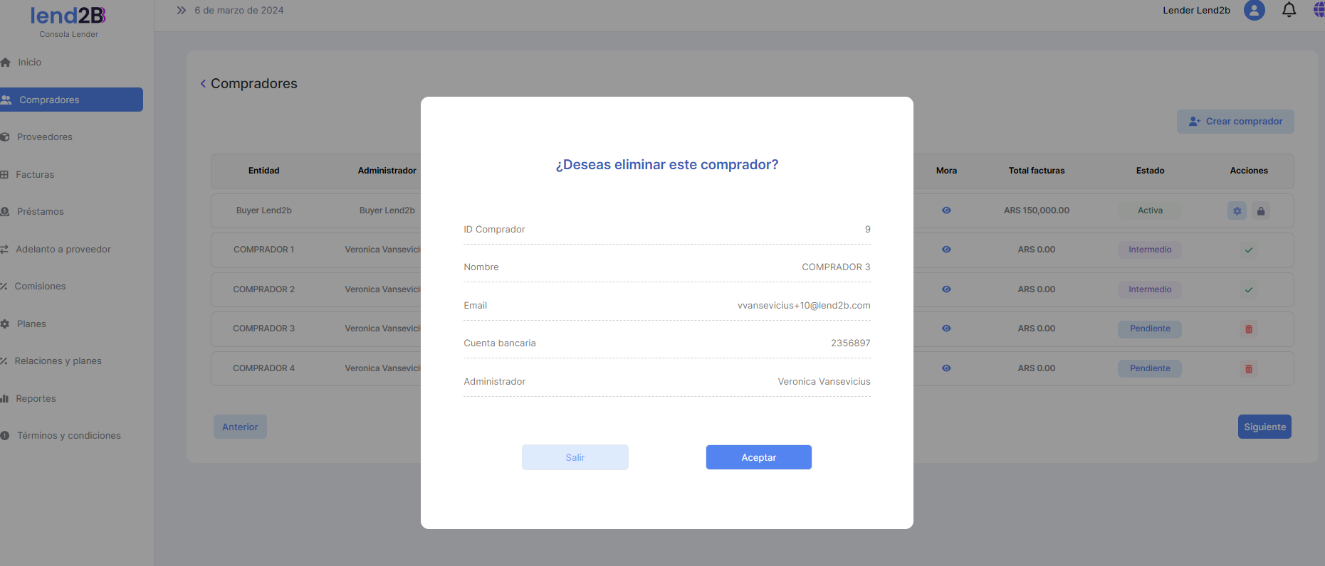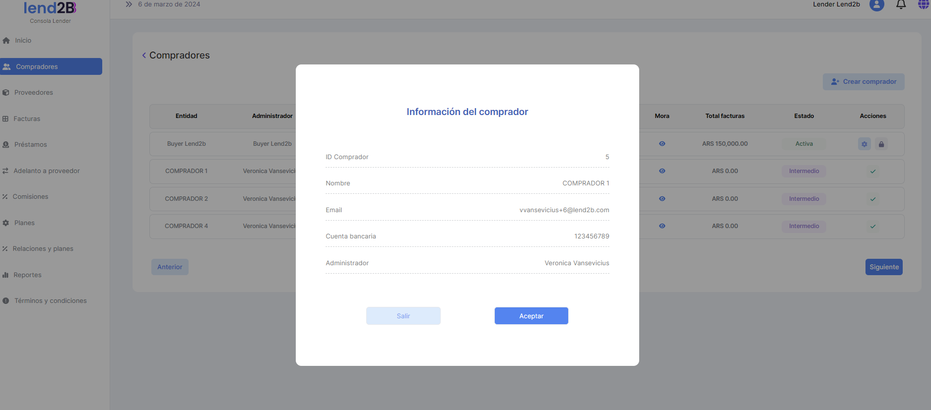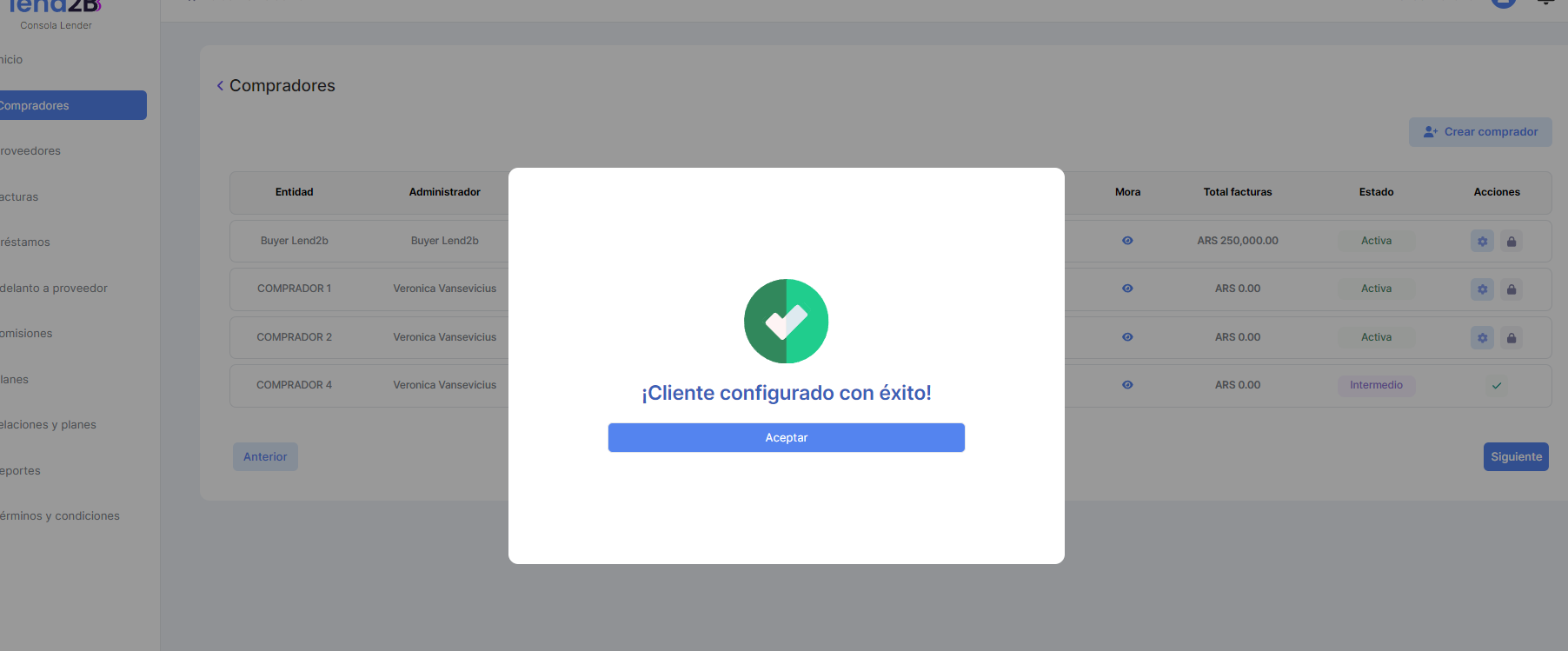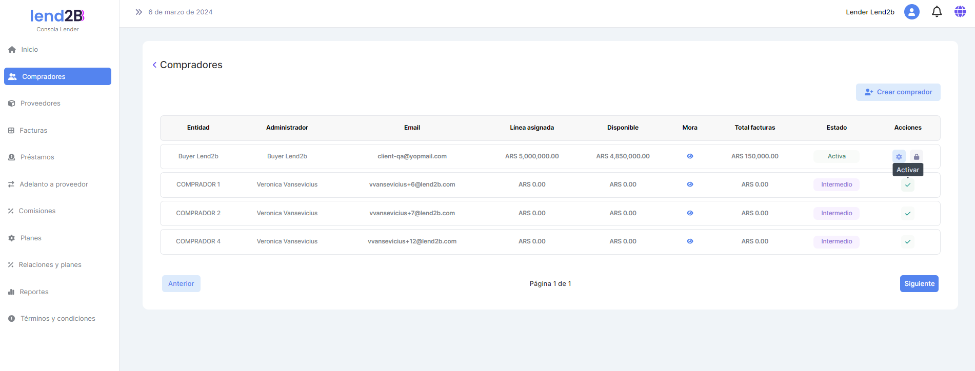 Se visualiza el Comprador como Intermedio y con la opción de Activar