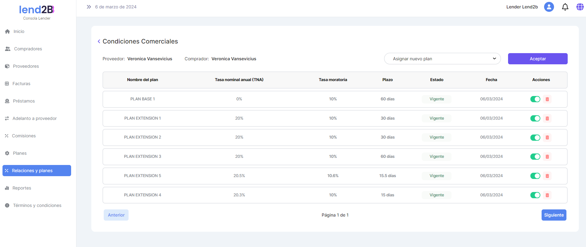 Para una factura aprobada por el Lender para el Plan Base (Adelanto al Proveedor y Préstamo al Comprador) se deben generar tres registros a mostrar: