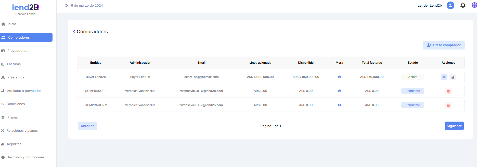 Con la relación generada se ve en la Consola del Proveedor los Compradores que tiene “asignado”