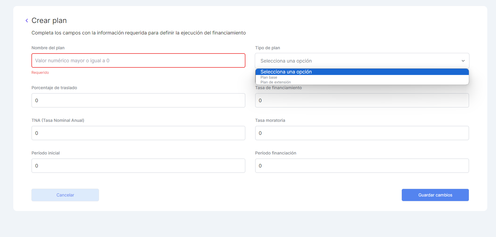 Actualmente permite seleccionar planes no activos con un mensaje.