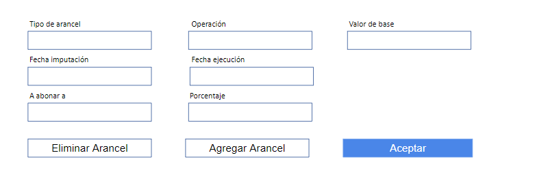Se propone incluir un botón dentro del alta de una asociación con el nombre Aranceles del Servicio. Al seleccionarlo debe desplegar una extensión de la pantalla que permita agregar aranceles en base a acuerdos diferenciados por Mercado o por Lender: