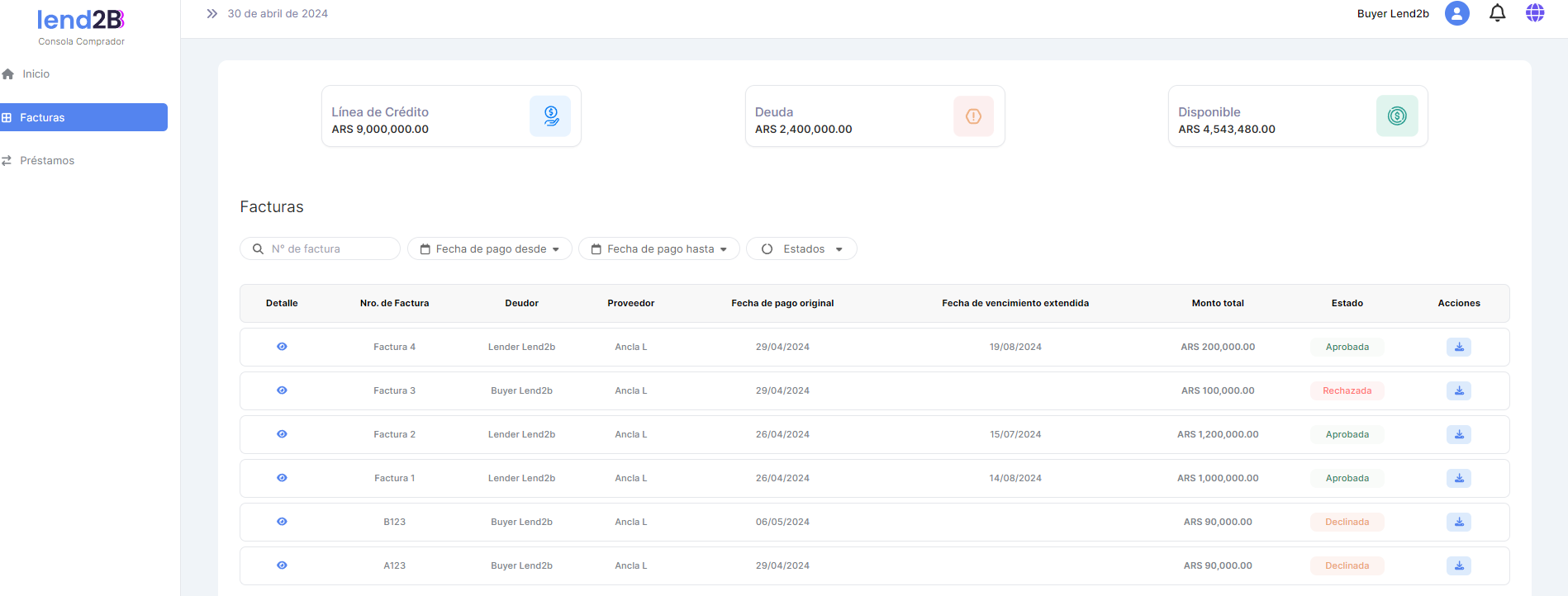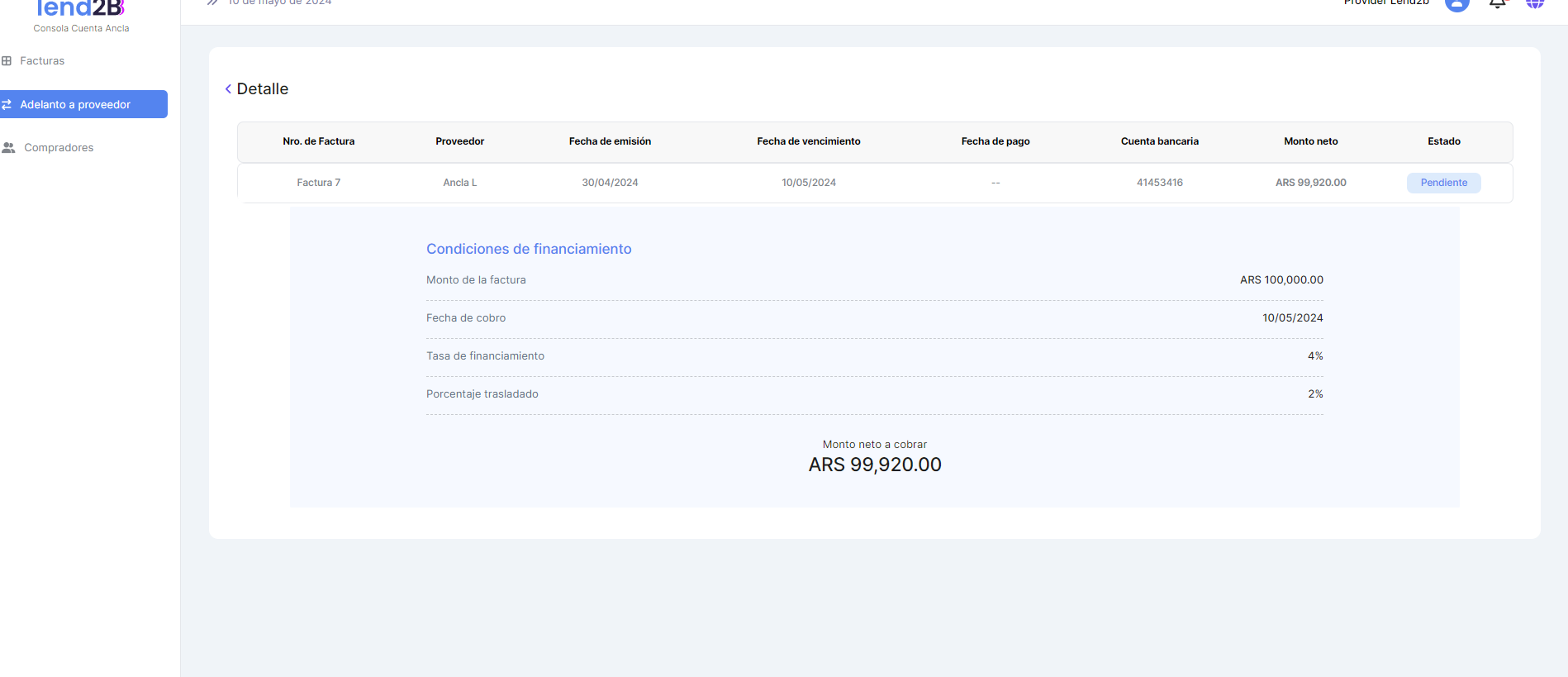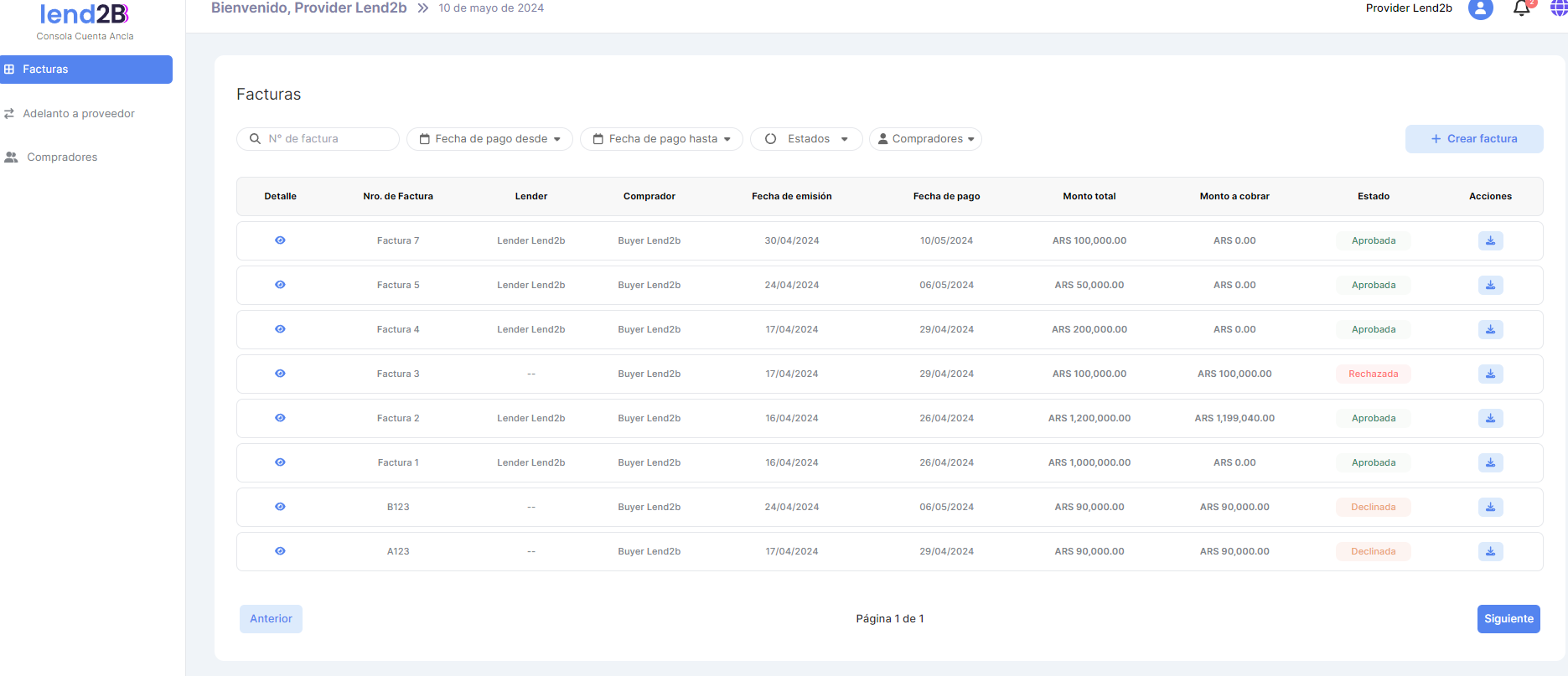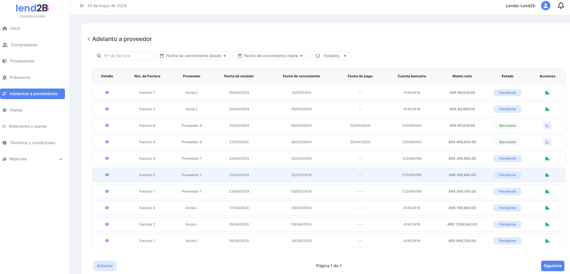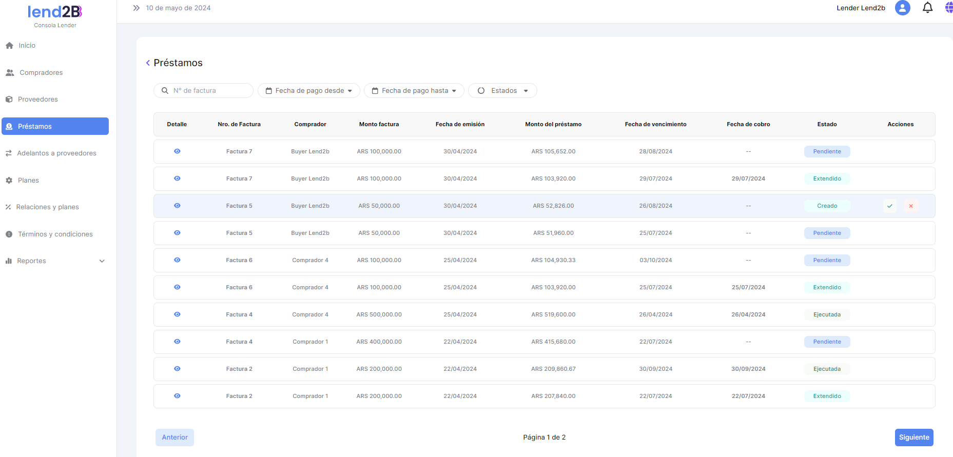 Ajustes en Consolas Lender, Comprador y Proveedor.