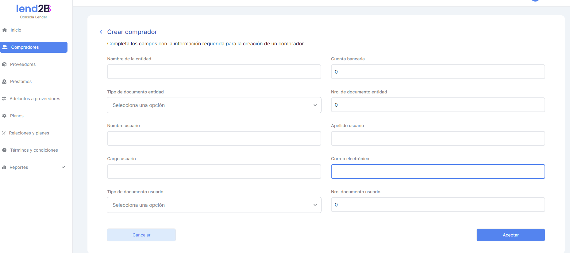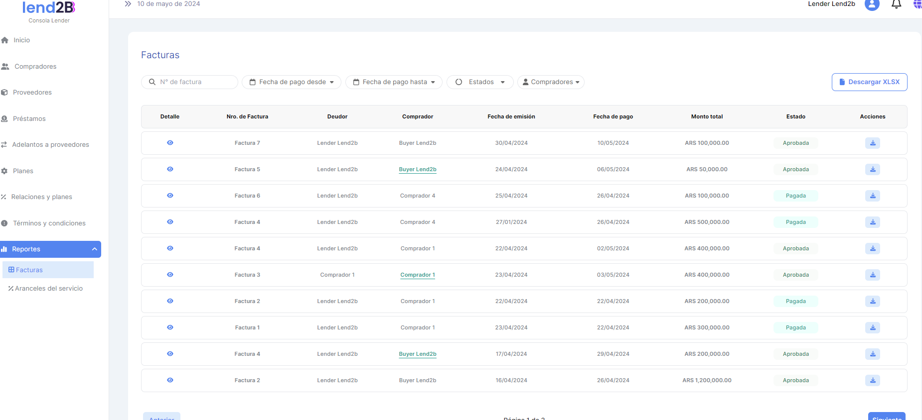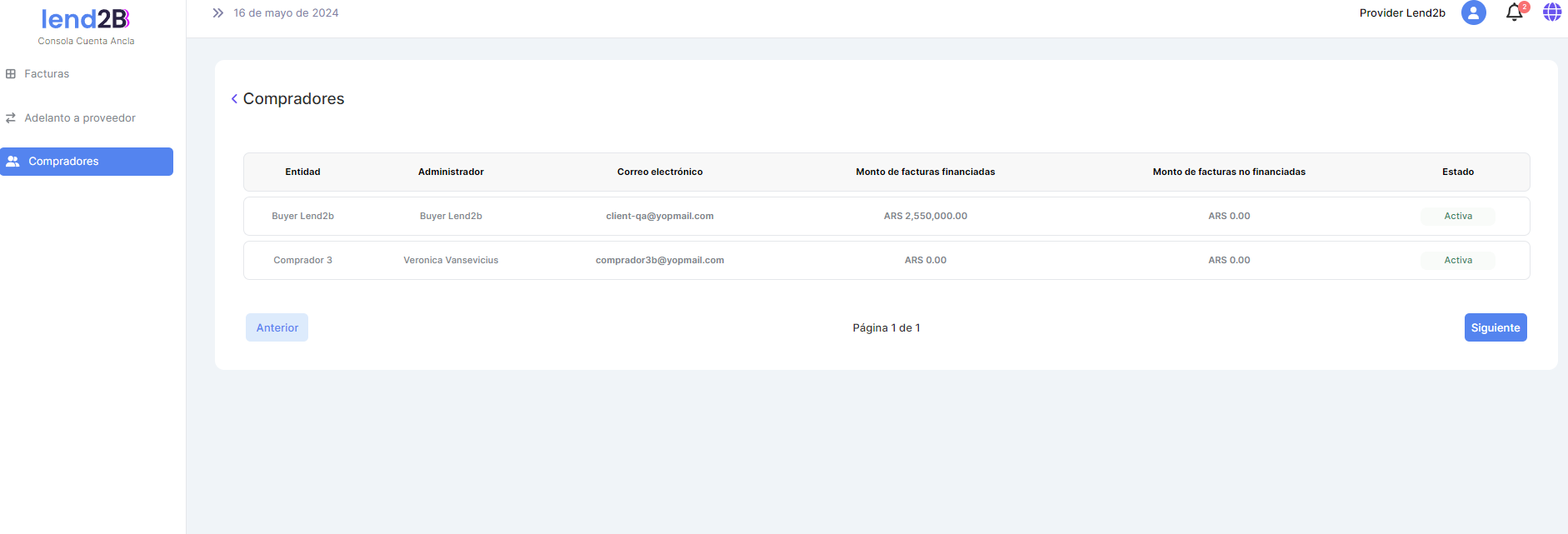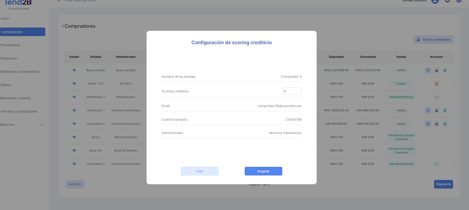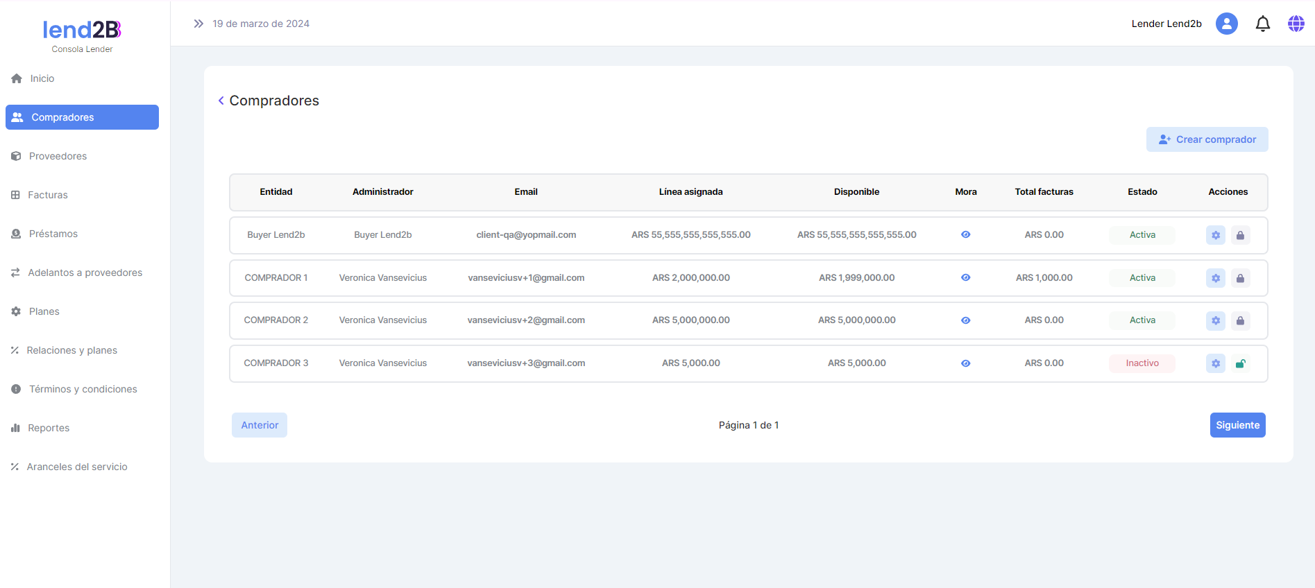 Se solicita en primer lugar diferenciar en la sección de Compradores de la Consola del Lender en: