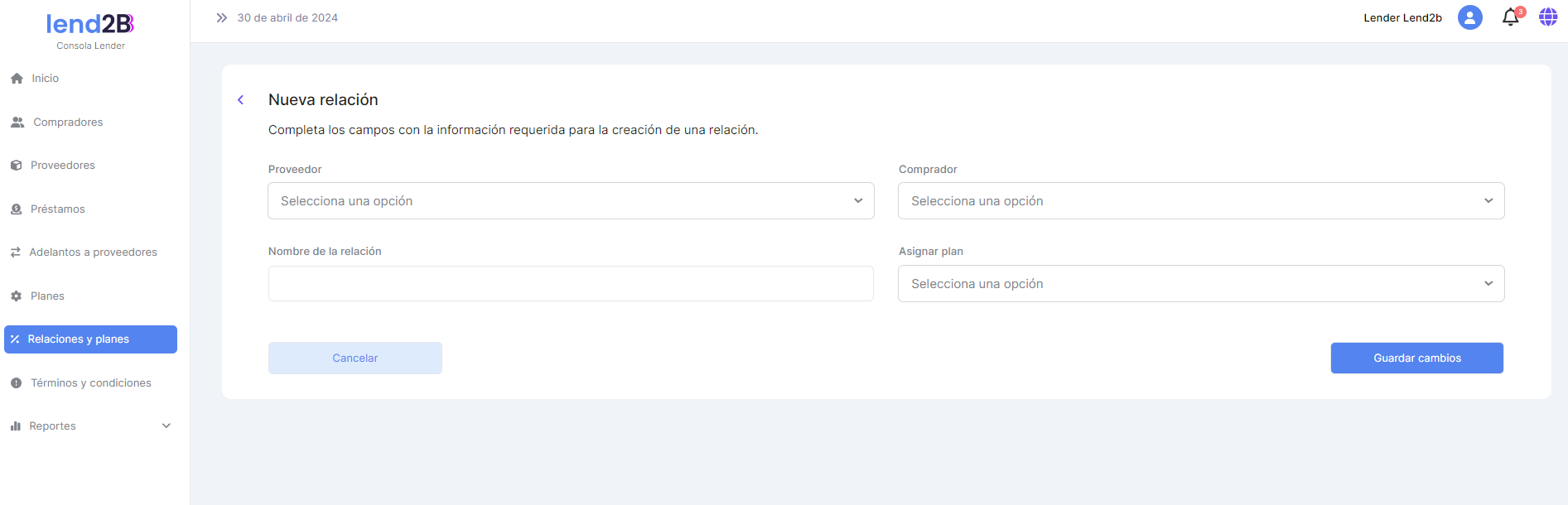 b. Cambios generados por el Lender.