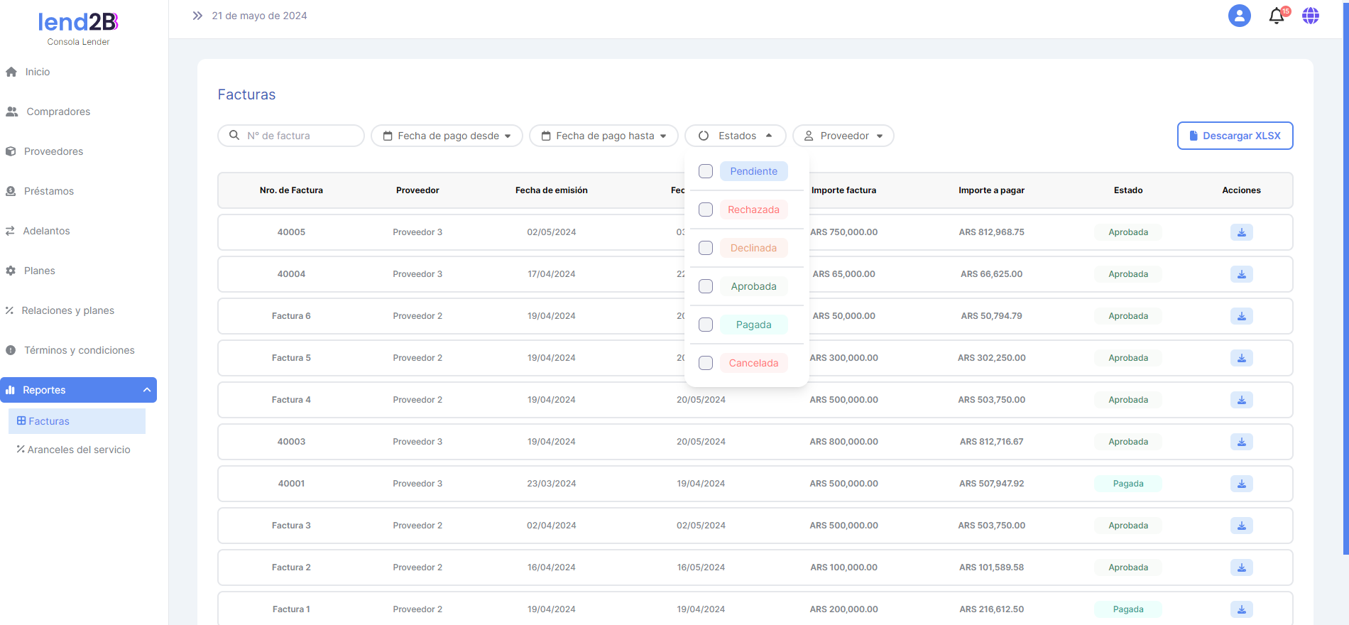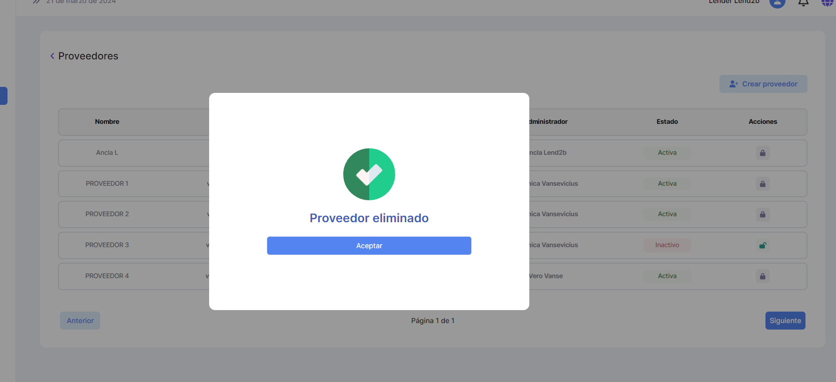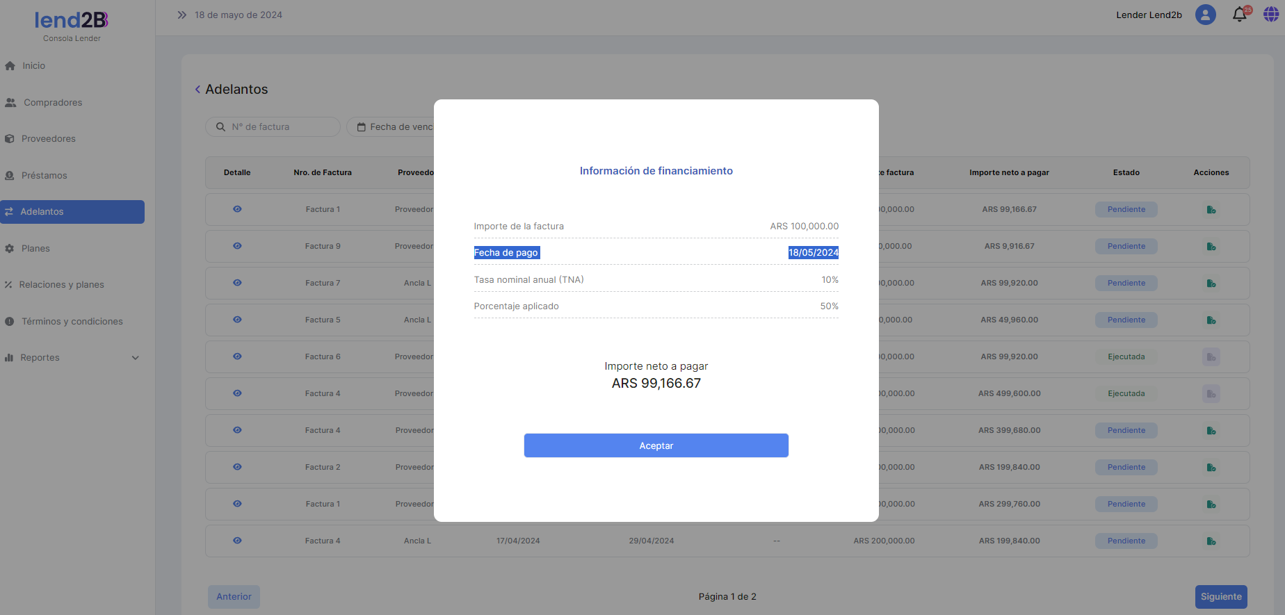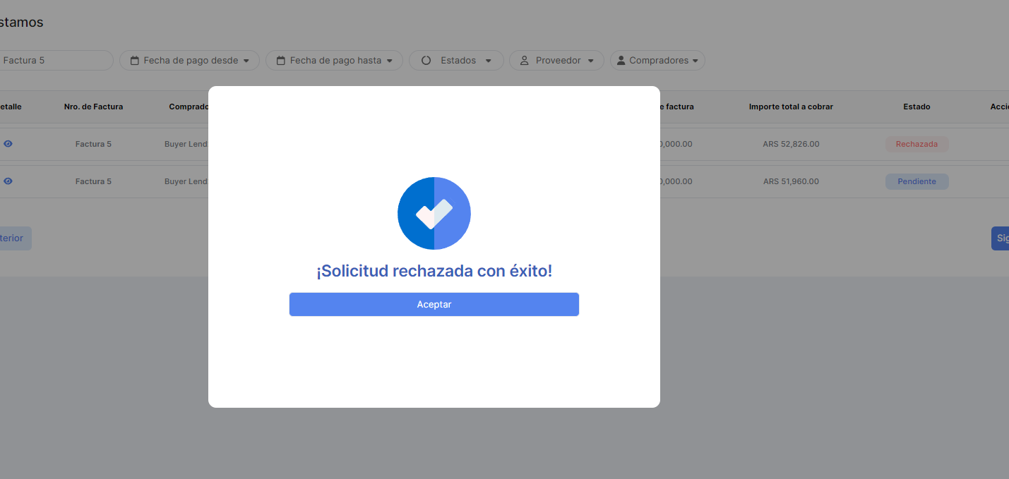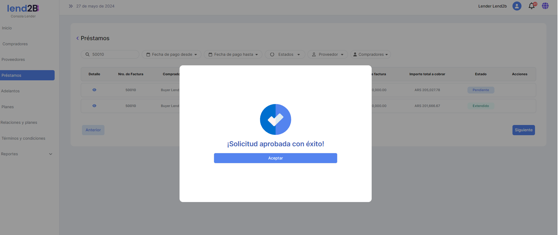 El Lender puede Aceptar la solicitud