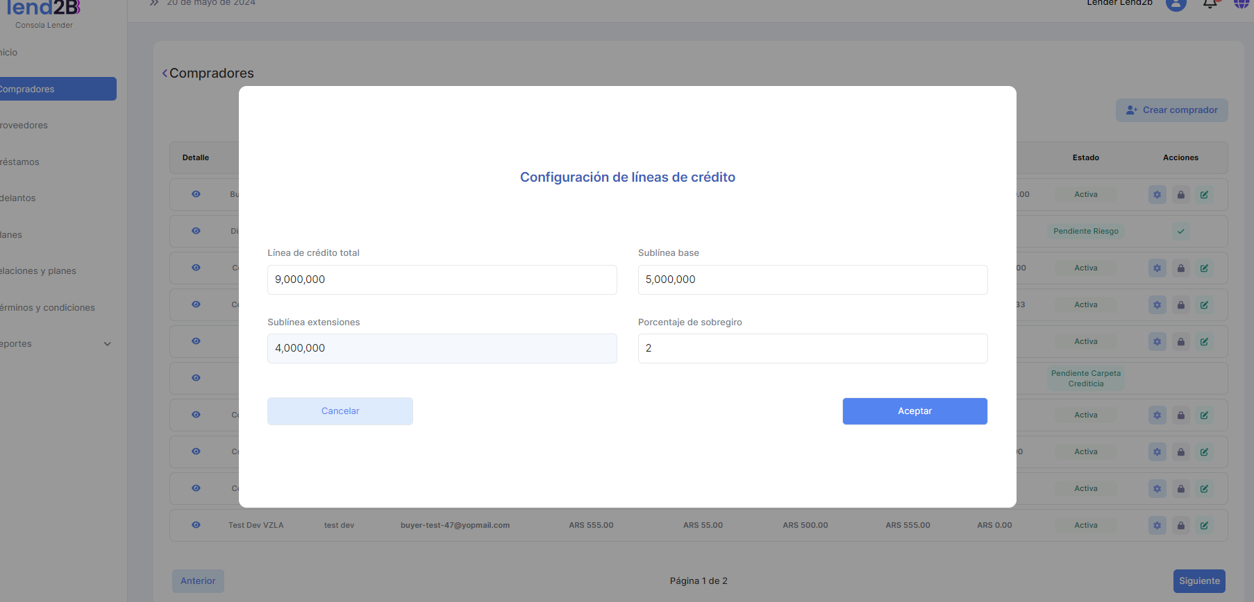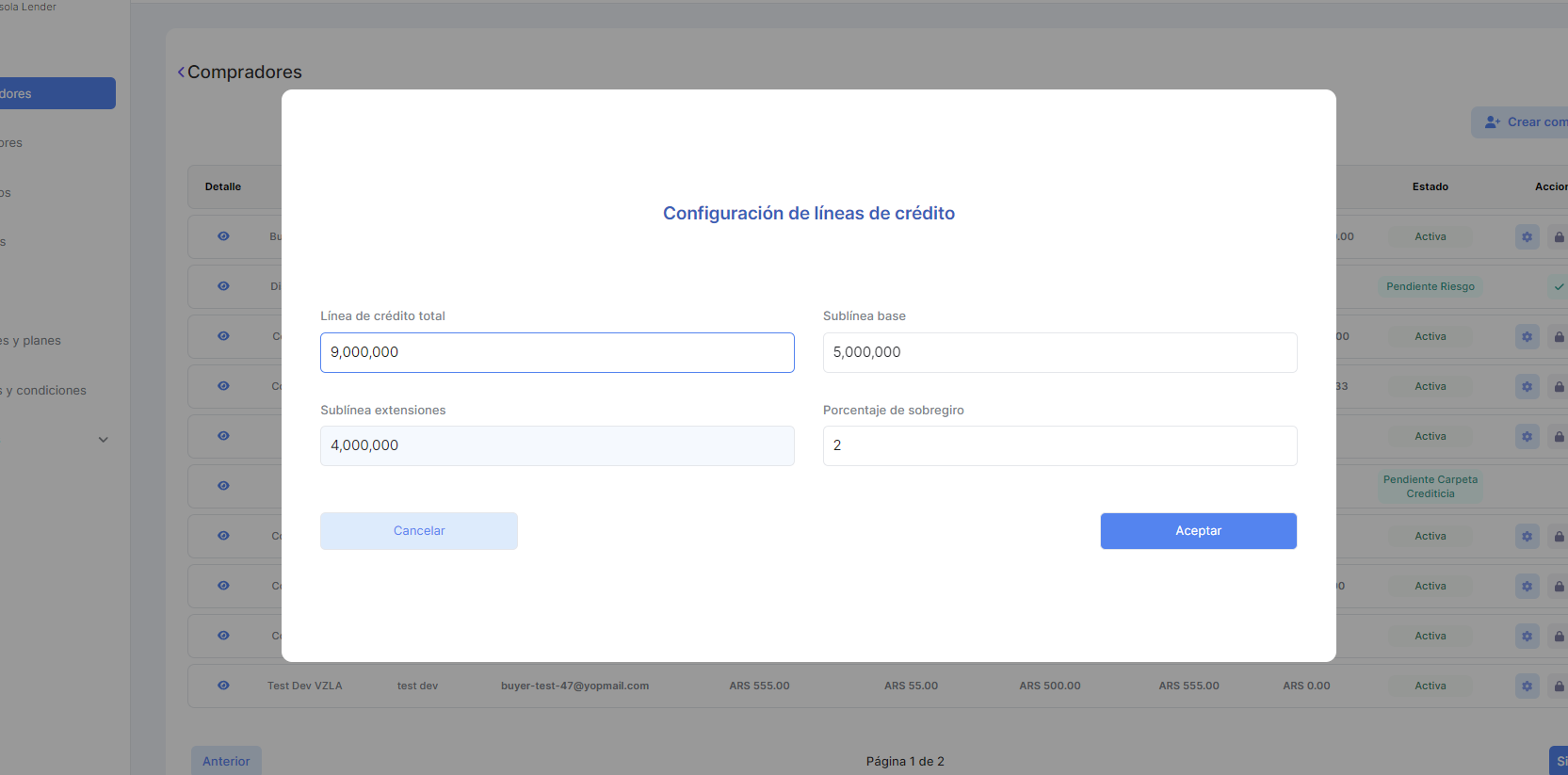 Configurar líneas de crédito cuando el estado del Comprador esta en Pendiente línea de crédito.
