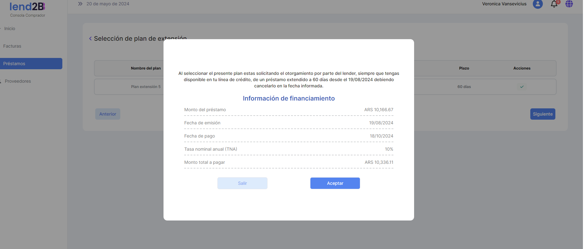 Fecha de vencimiento del Préstamo extendido: 20/05