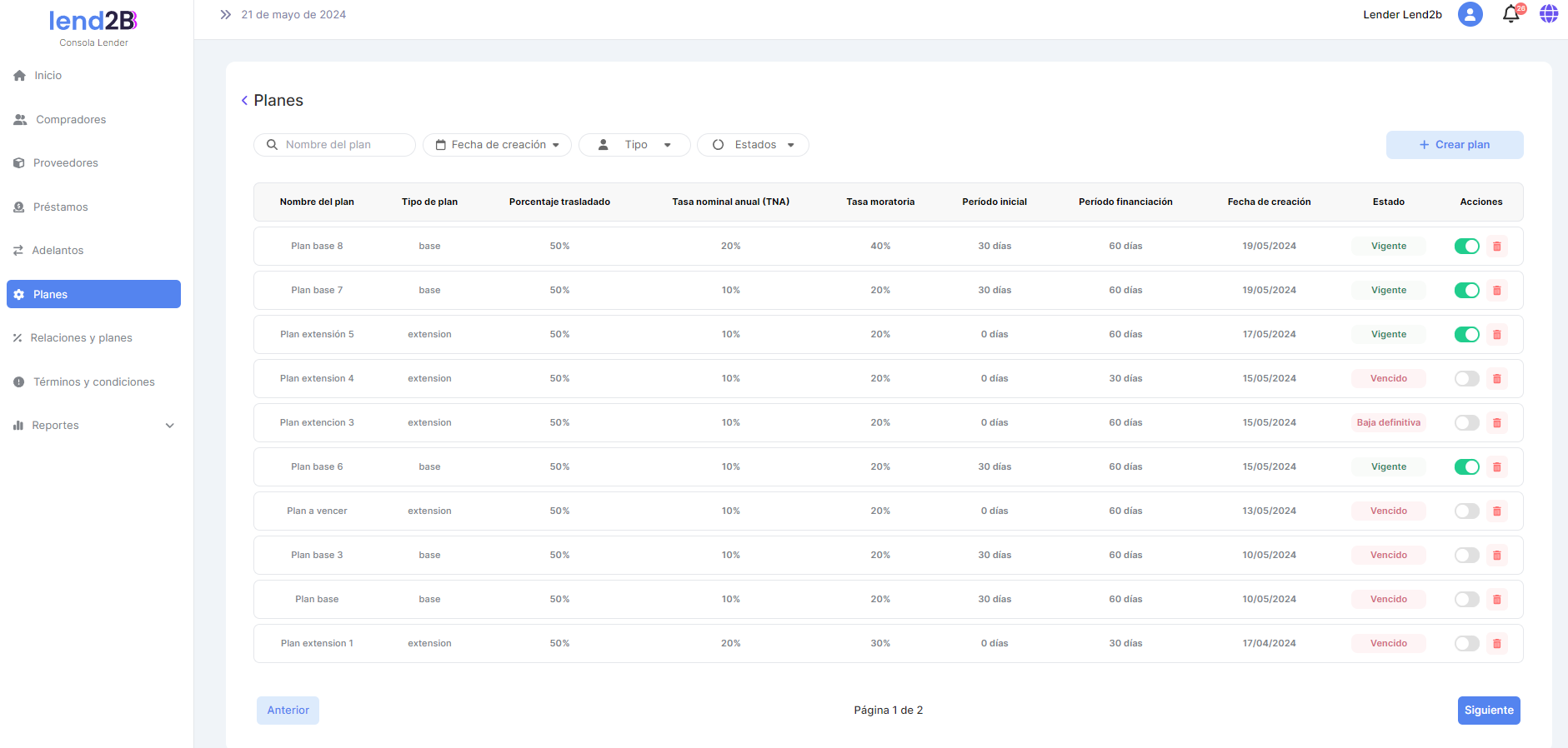 Fecha de vencimiento del plan. (mismos parámetros que los demás planes)