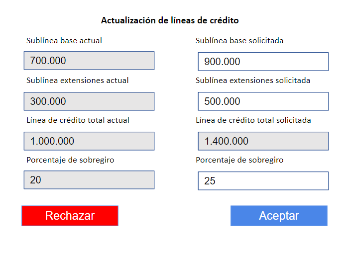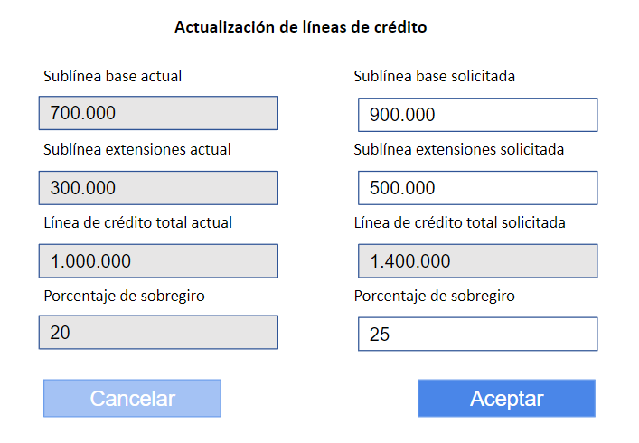 Actualización de líneas de crédito
