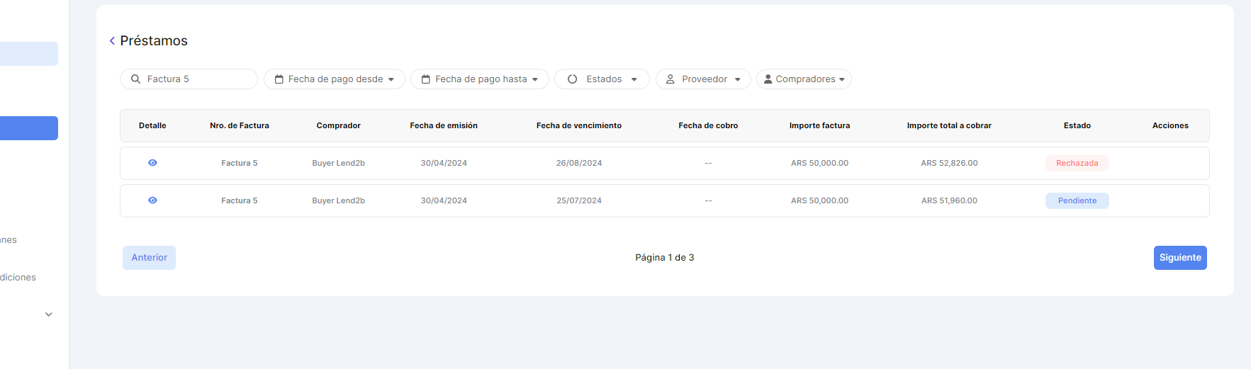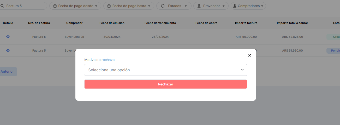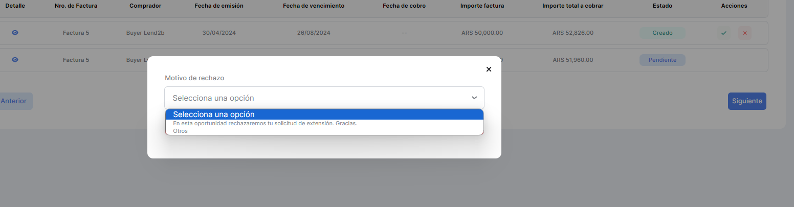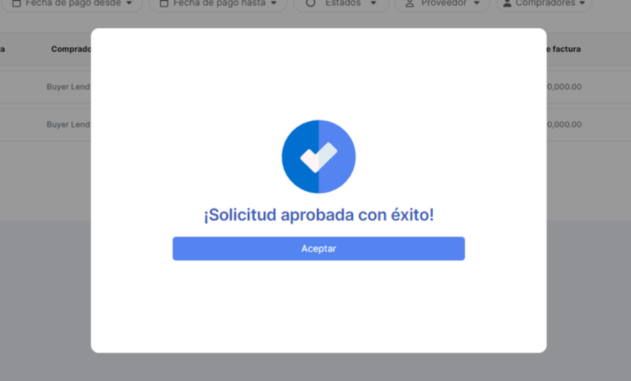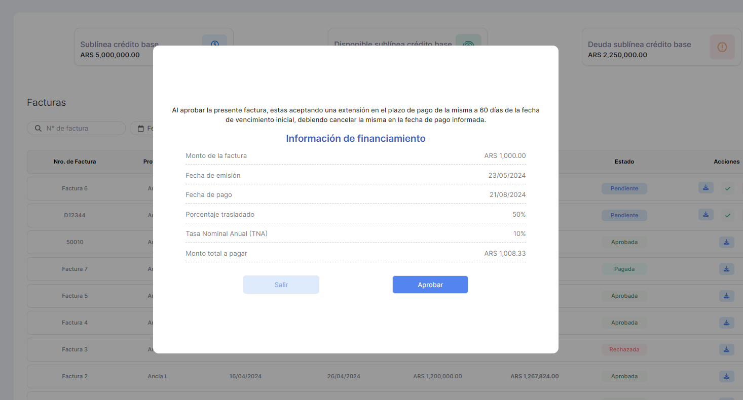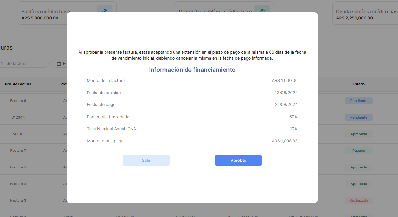 Pasados esa fecha límite, cuando el Comprador acepta una factura, independientemente de tener o no disponible en su sublínea de crédito, la Factura será aprobada sin financiamiento.