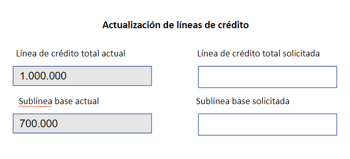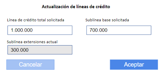 Importante: La aceptación de la refinanciación del Préstamo base o el extendido implica también actualizaciones en las sublíneas base, extensiones y sobregiro.