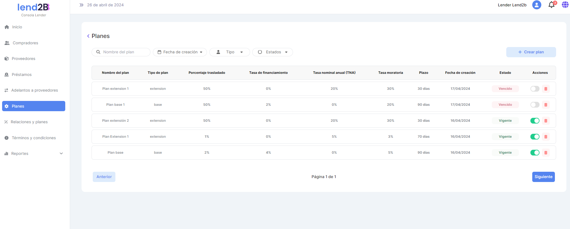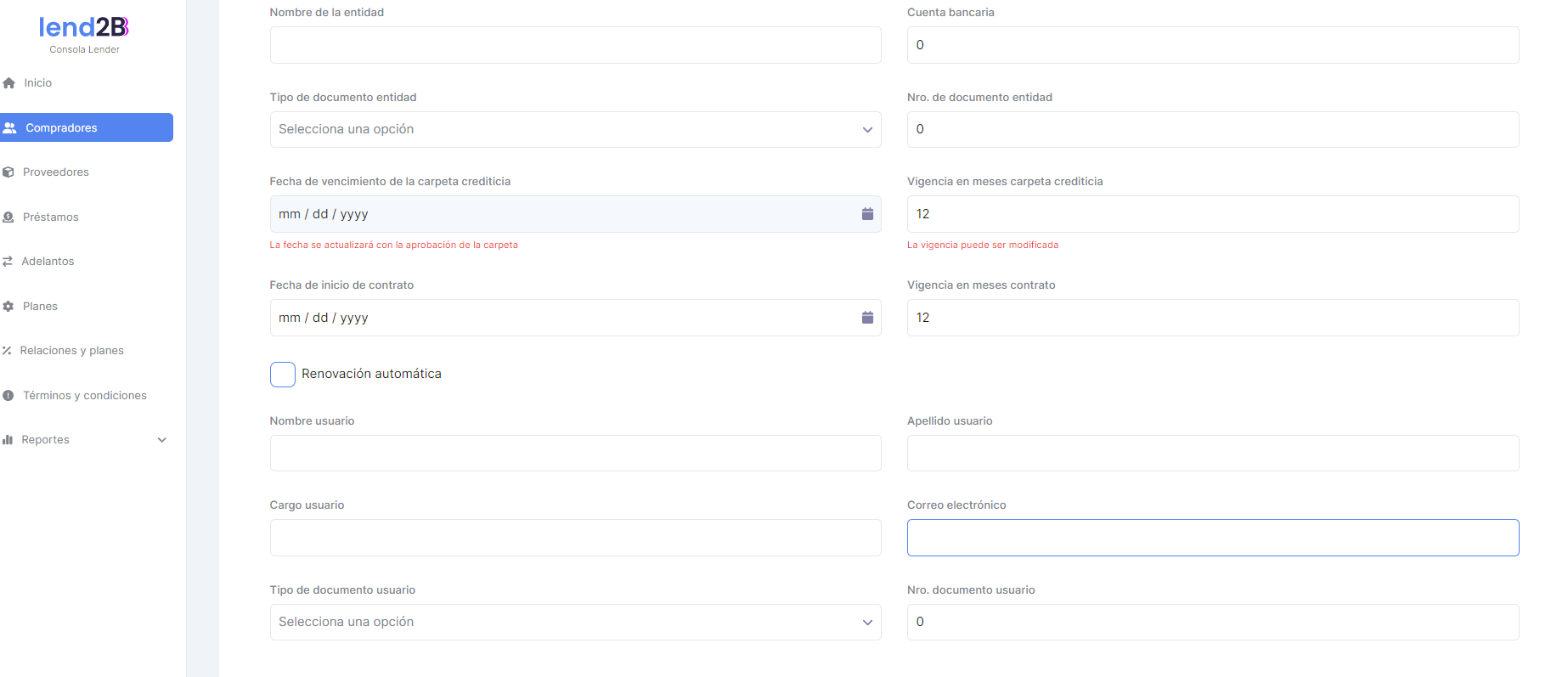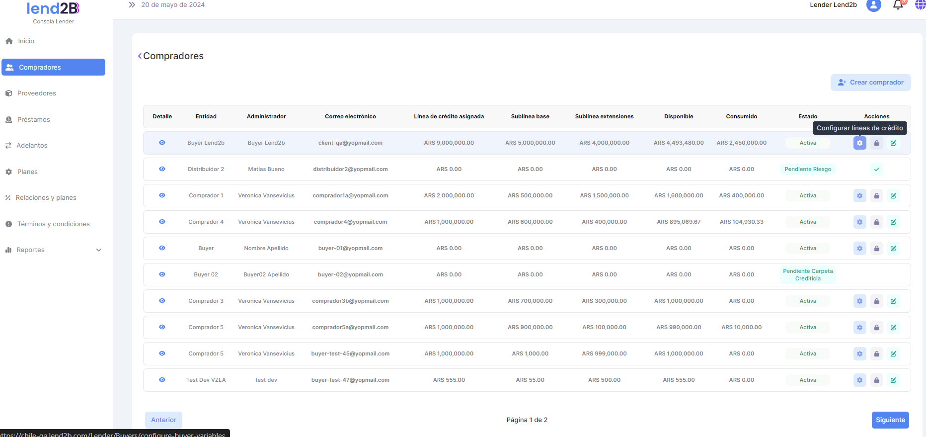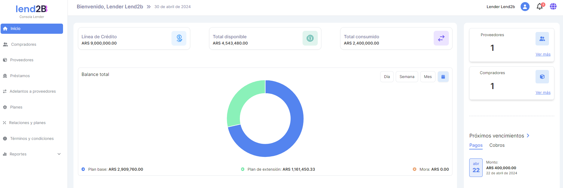 Ajuste en Consolas Comprador y Proveedor. Notificaciones Lend2B