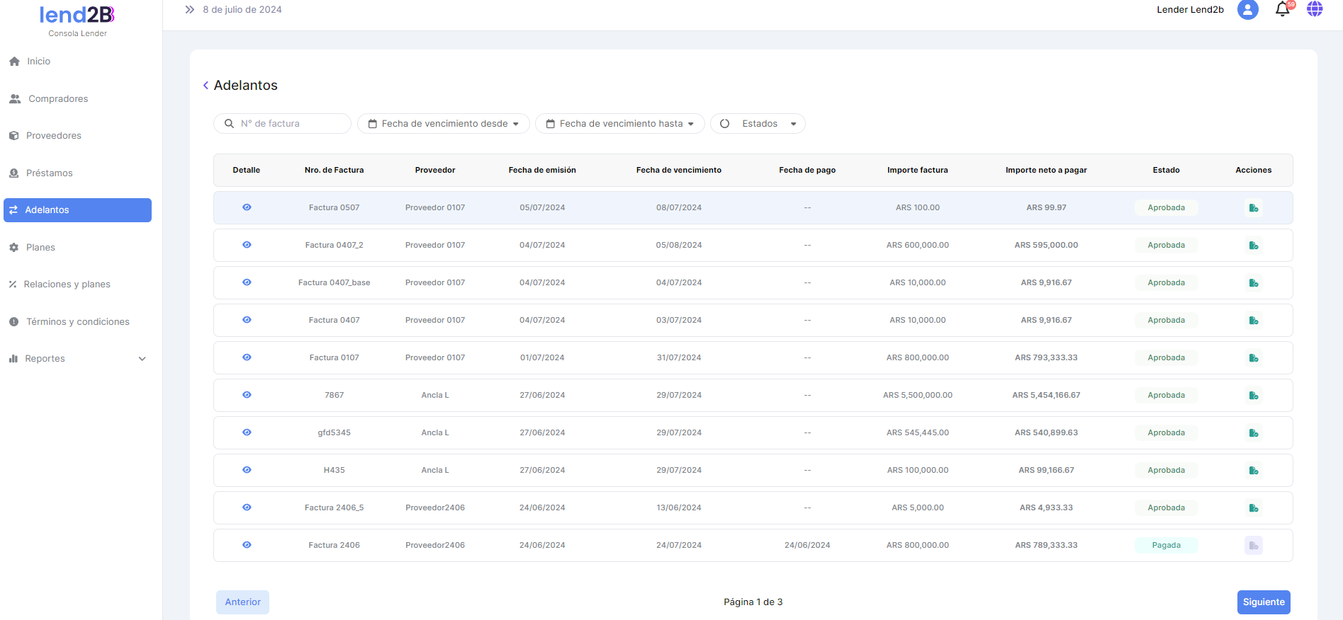 El Préstamo pasa a Pago confirmado (tanto en la Consola del Comprador como en la Consola del Lender).