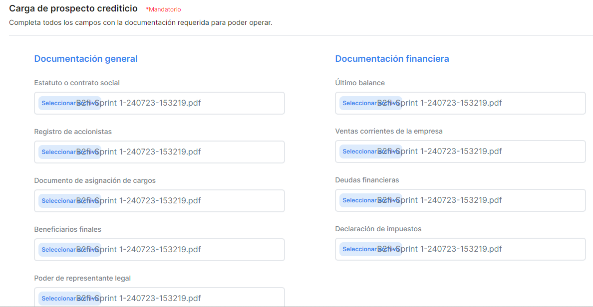 Cuando el Proveedor selecciona en la sección de Solicitudes a completar la opción de Actualización de cuenta bancaria destino debe acceder a una pantalla similar a la de Prestamos: