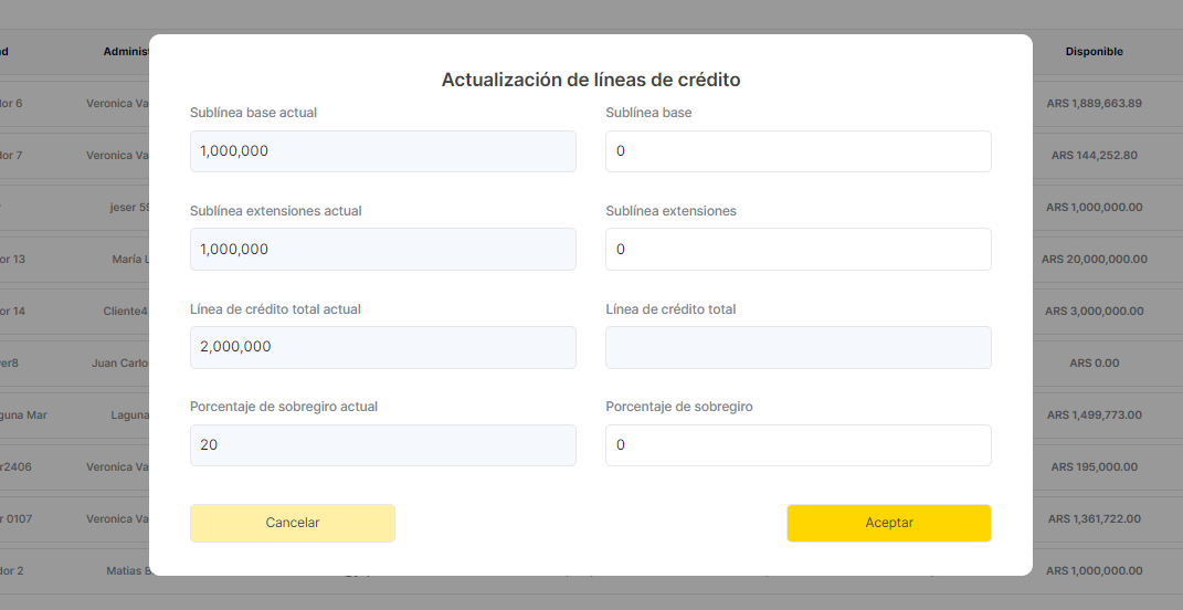 Nuevo disponible sublinea base = Disponible sublinea base + préstamo base (Factura con financiamiento más los intereses)
