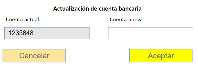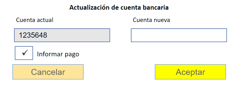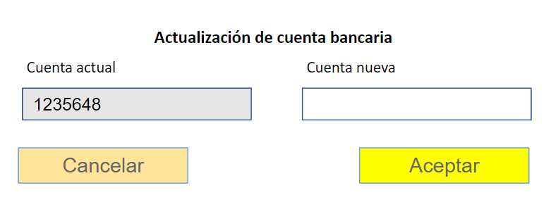 Al seleccionar Actualizar cuenta bancaria se debe acceder a un modal similar al siguiente: