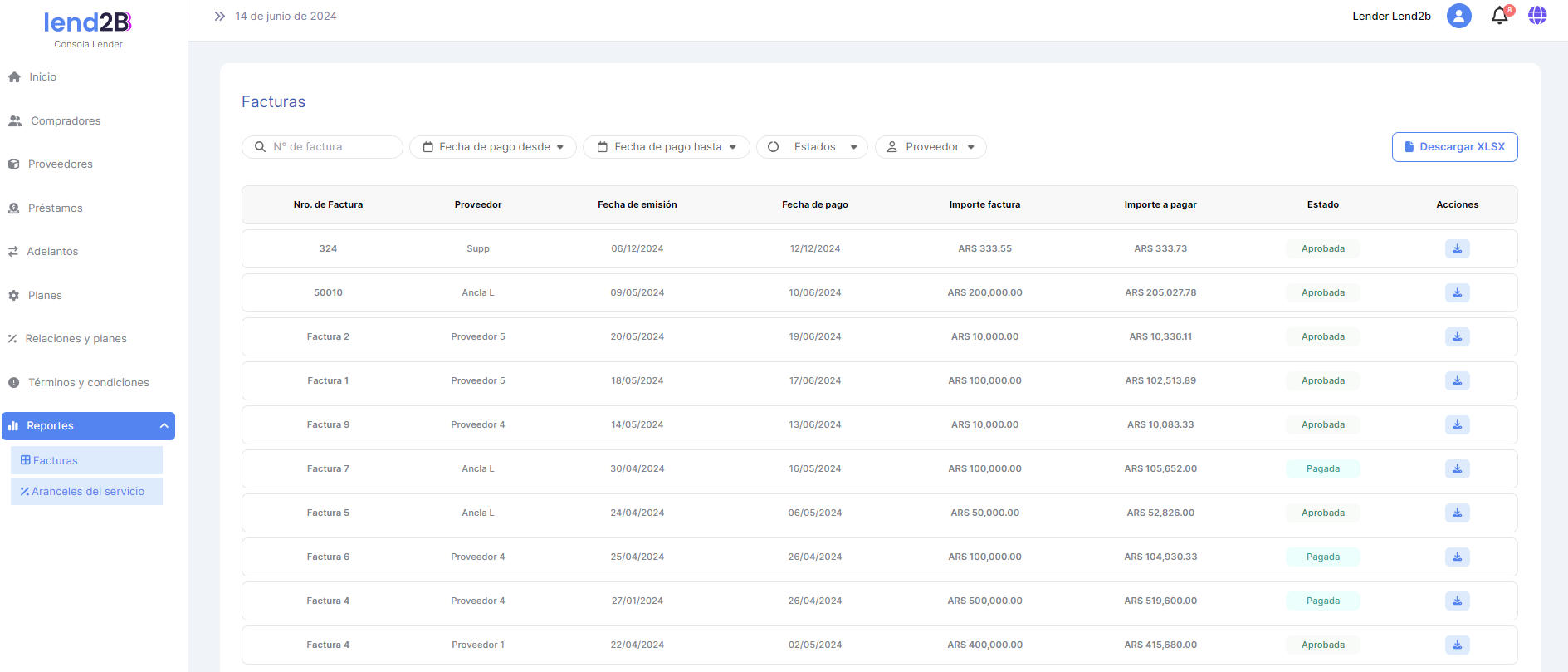 Si Lend2B habilitó la opción de Informar pago (switch en SI)