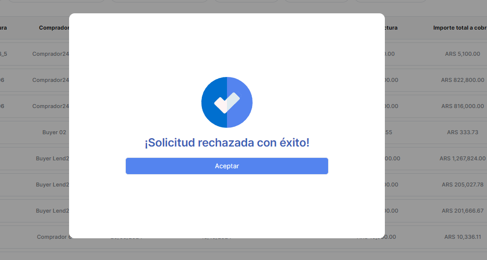 Si el Lender NO verifica que la cuenta informada es correcta y pertenece al Proveedor se debe generar una nueva tarea de Actualización de cuenta bancaria en la sección de Solicitudes a completar en la Consola del Proveedor.