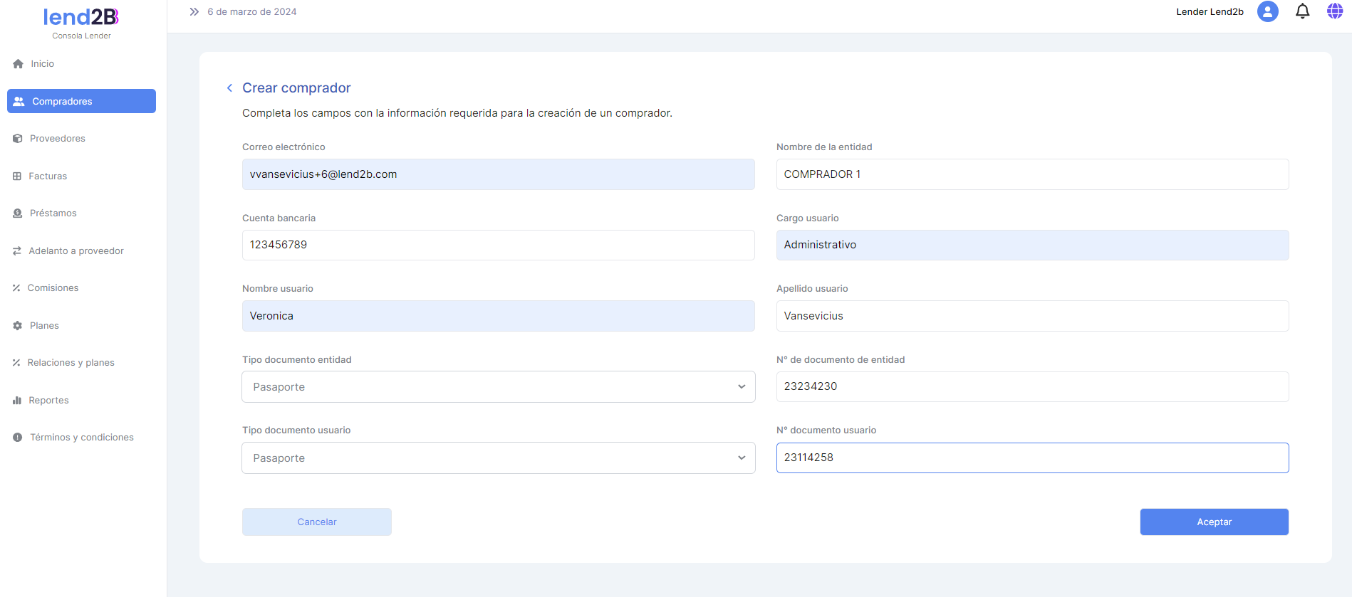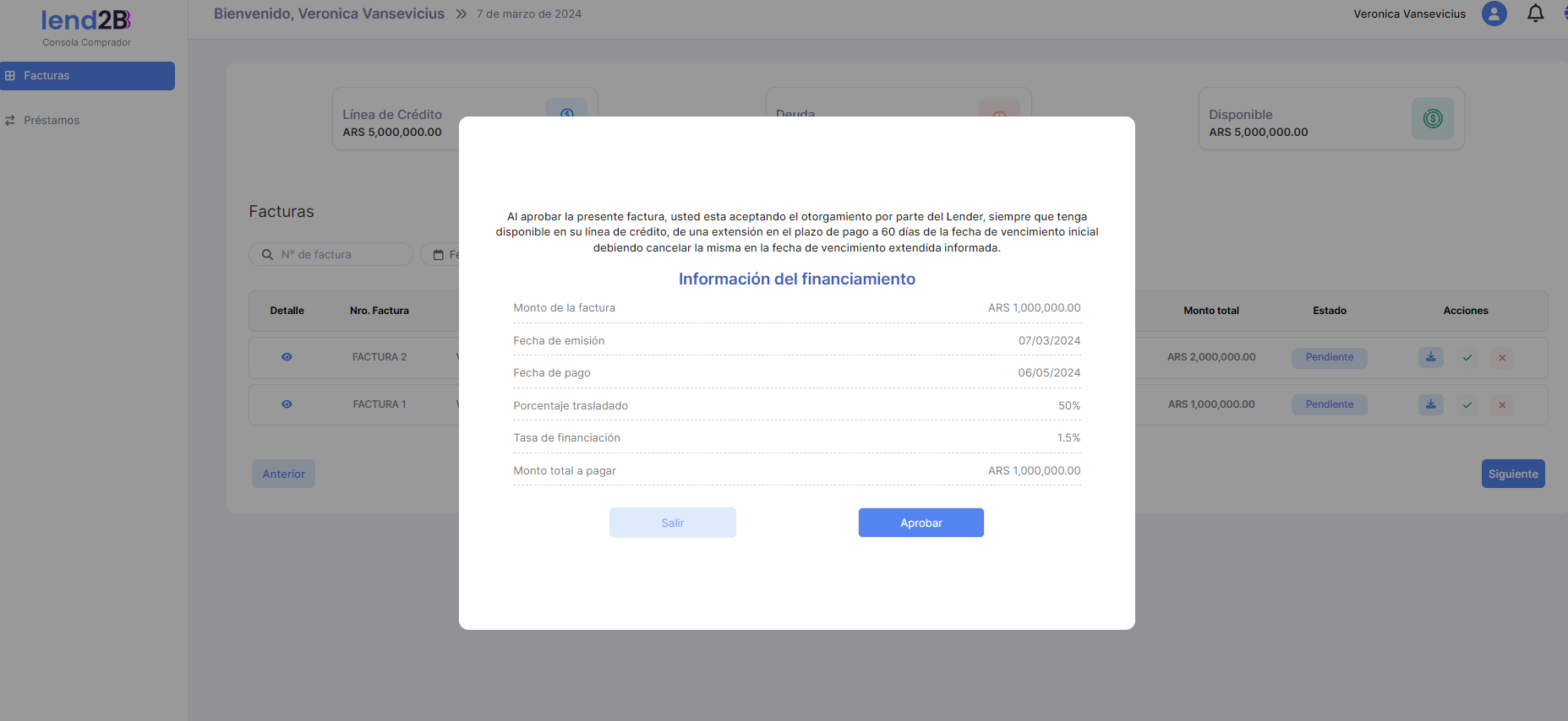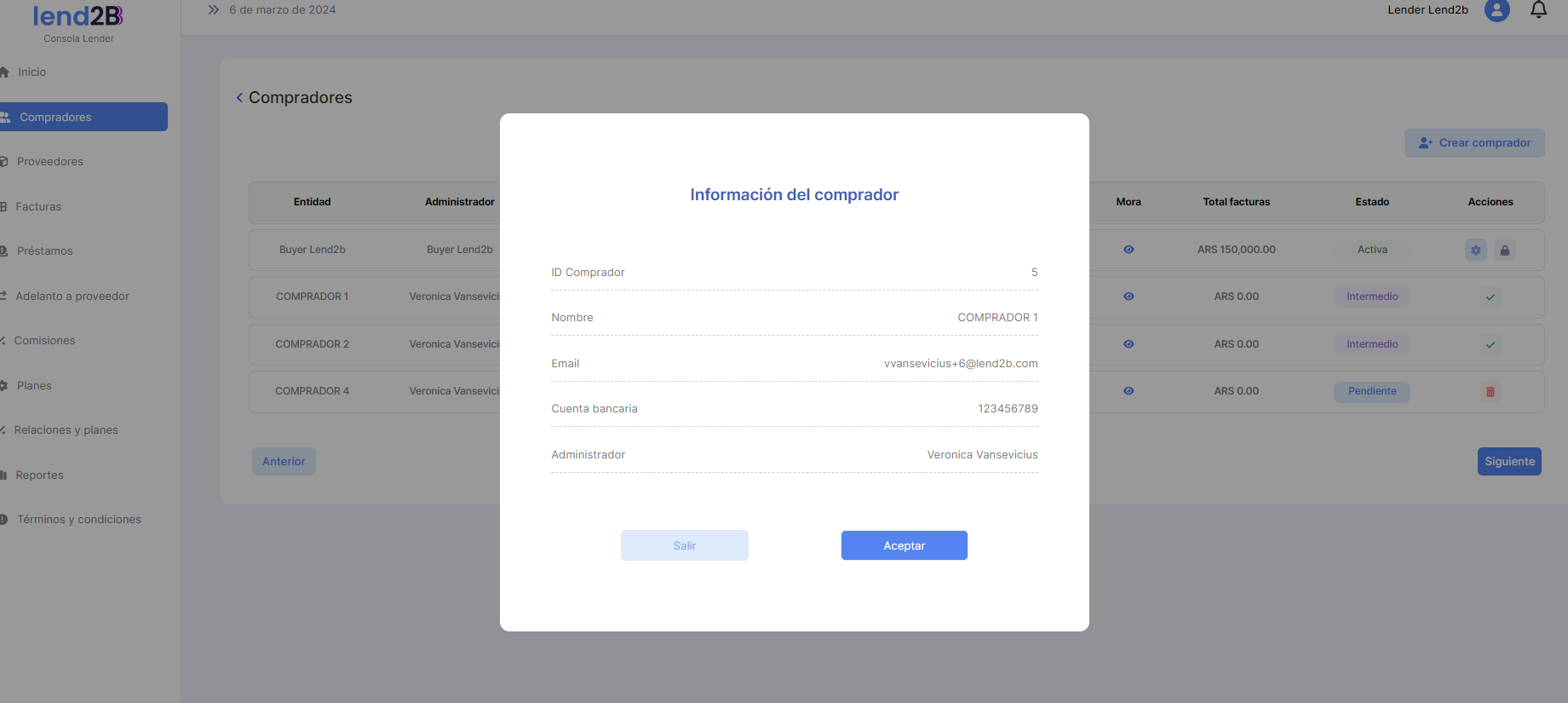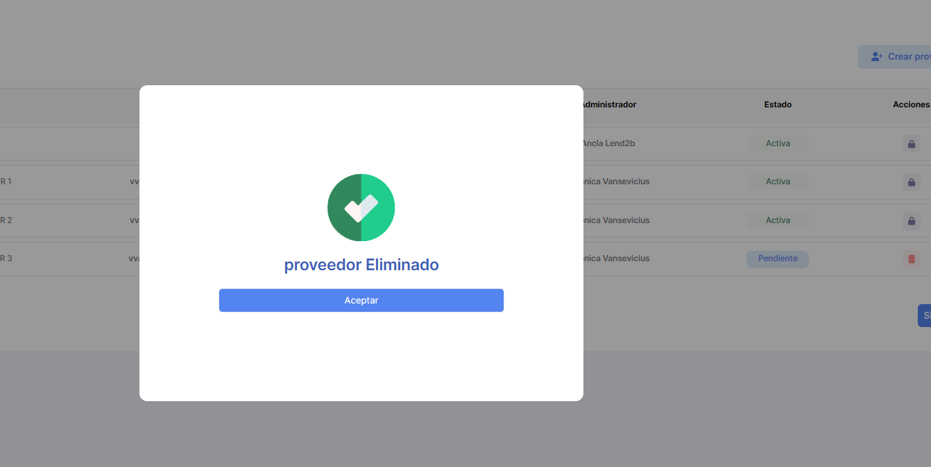 La solicitud puede ser aceptada o rechazada por el Lender desde la Consola en Lapachos Lending