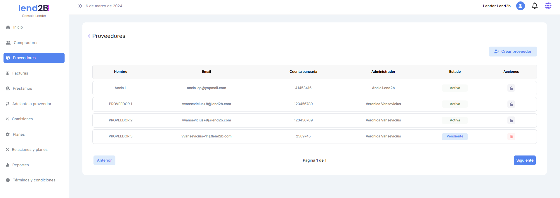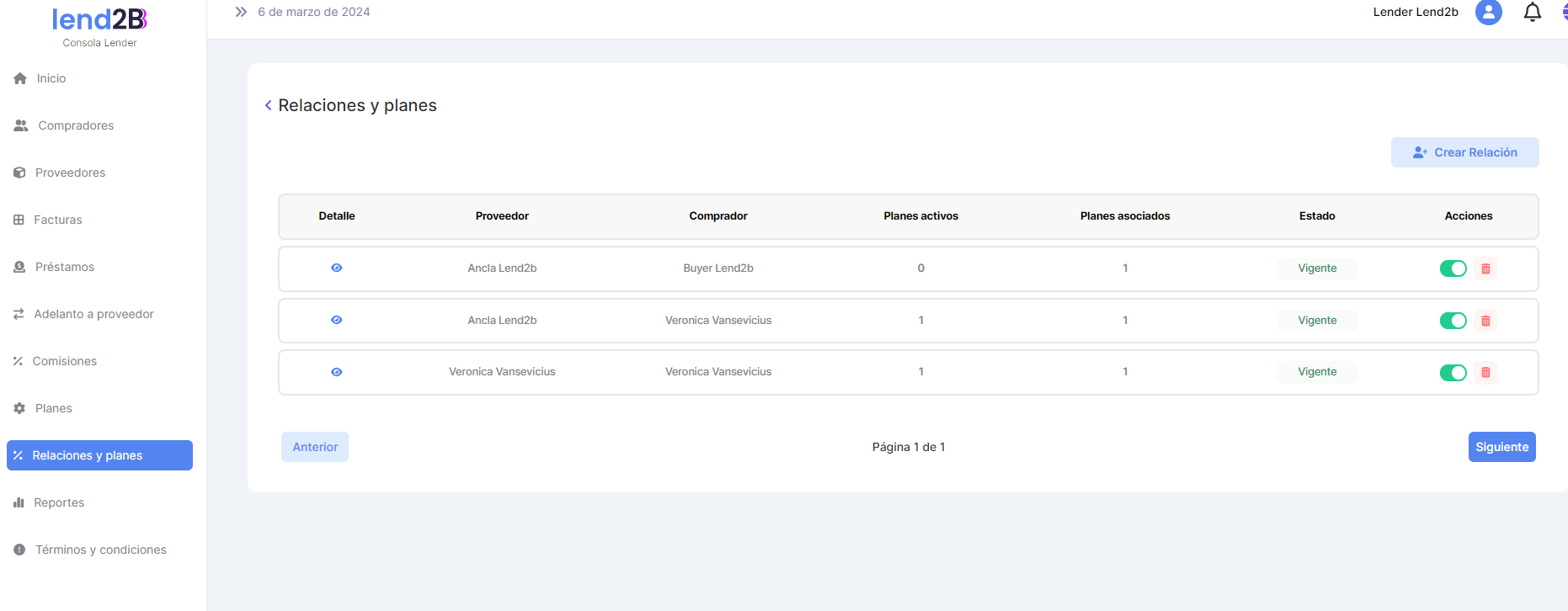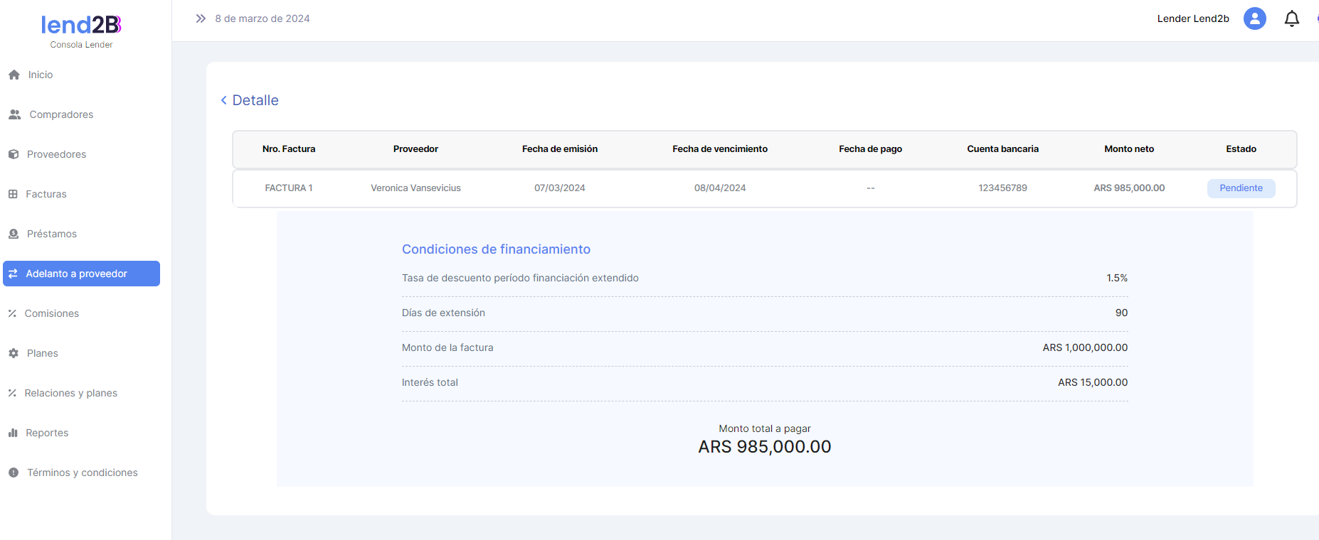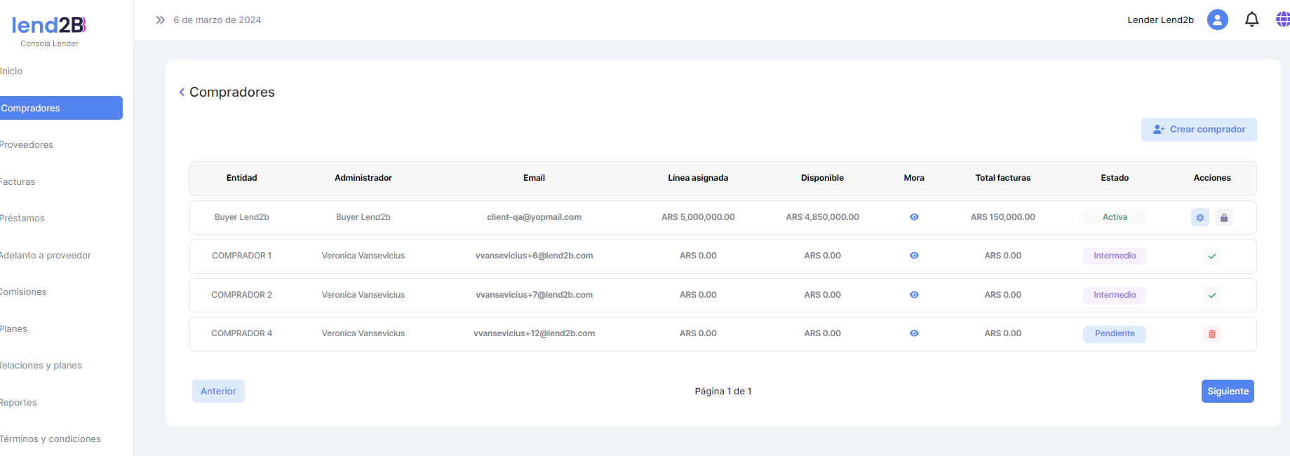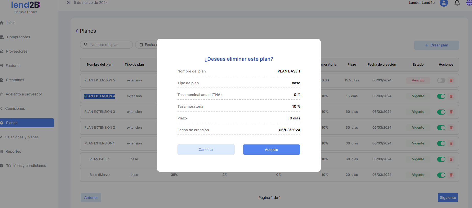 La solicitud puede ser aceptada o rechazada por el Lender desde la Consola en Lapachos Lending