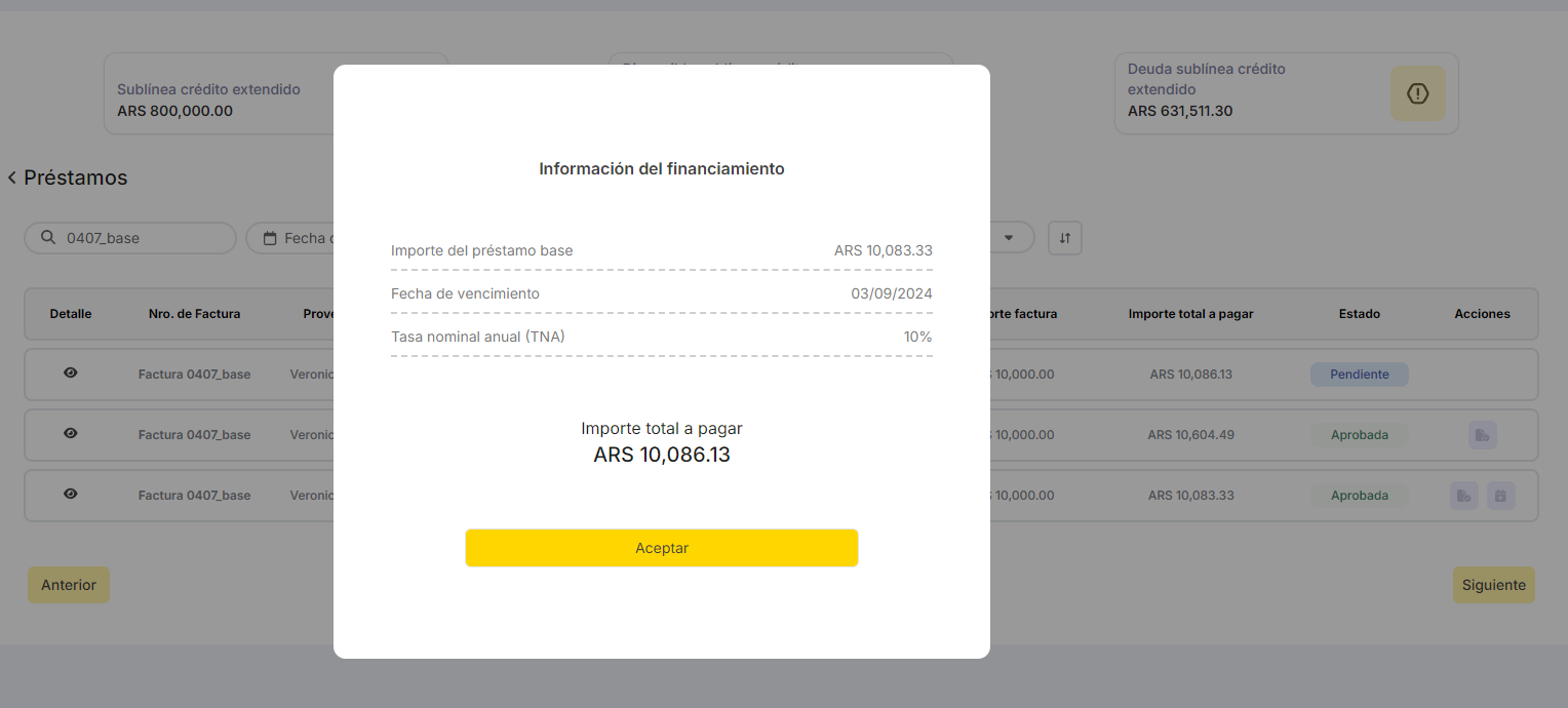 Aprobación de préstamo base