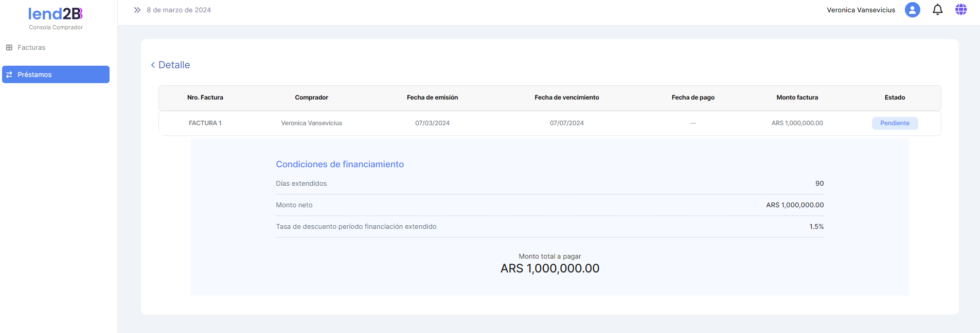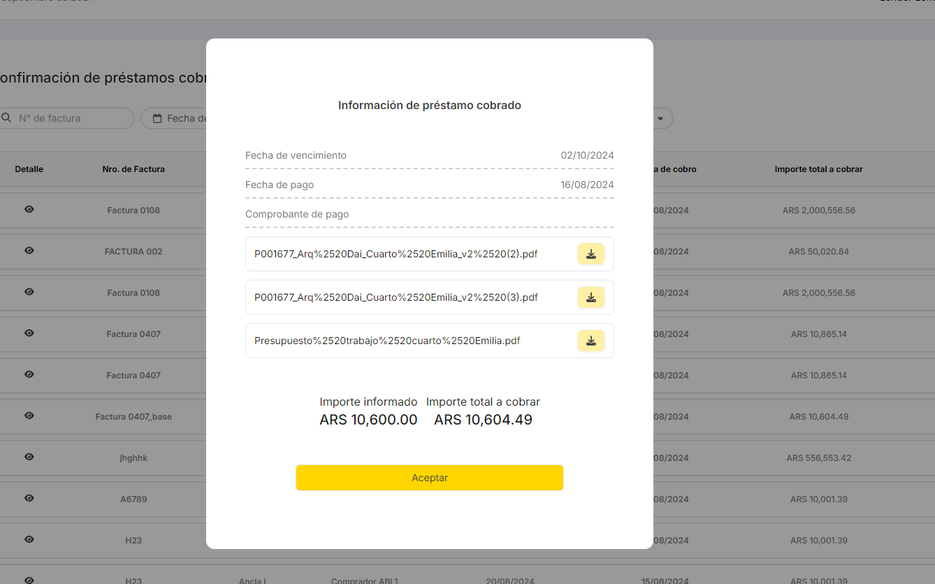 Actualiza nuevamente los datos incluidos en Detalle tanto en la sección de Prestamos del Menú como en la sección de Solicitudes a completar