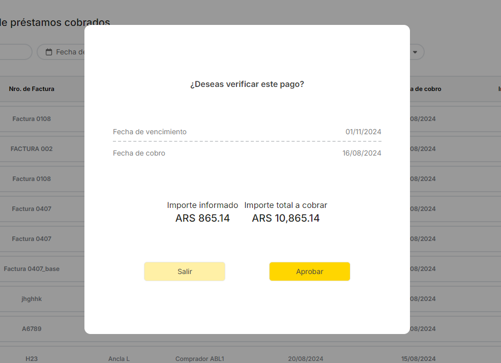 Genera una nueva tarea a completar en la sección de Solicitudes a completar: Confirmación de prestamos cobrados.
