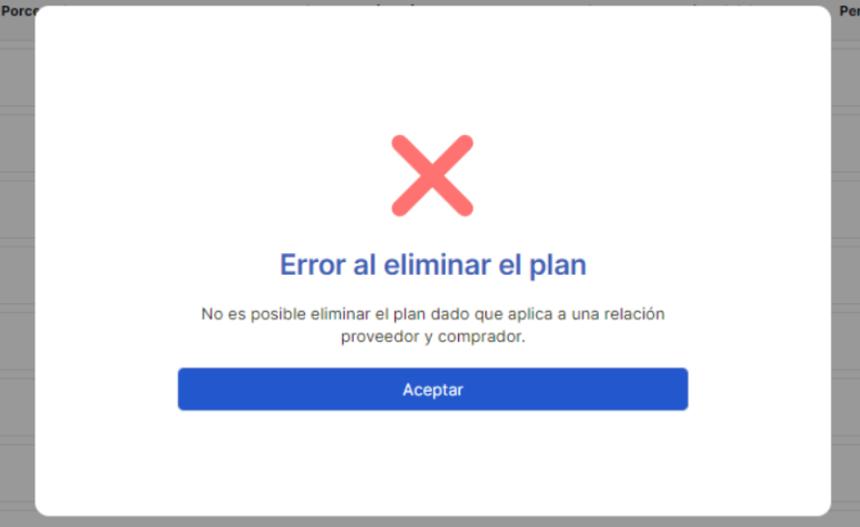 Cuando el comprador avanza sobre la solicitud de un préstamo refinanciado, si al seleccionar el Plan refinanciación correspondiente aparezca un modal similar a: