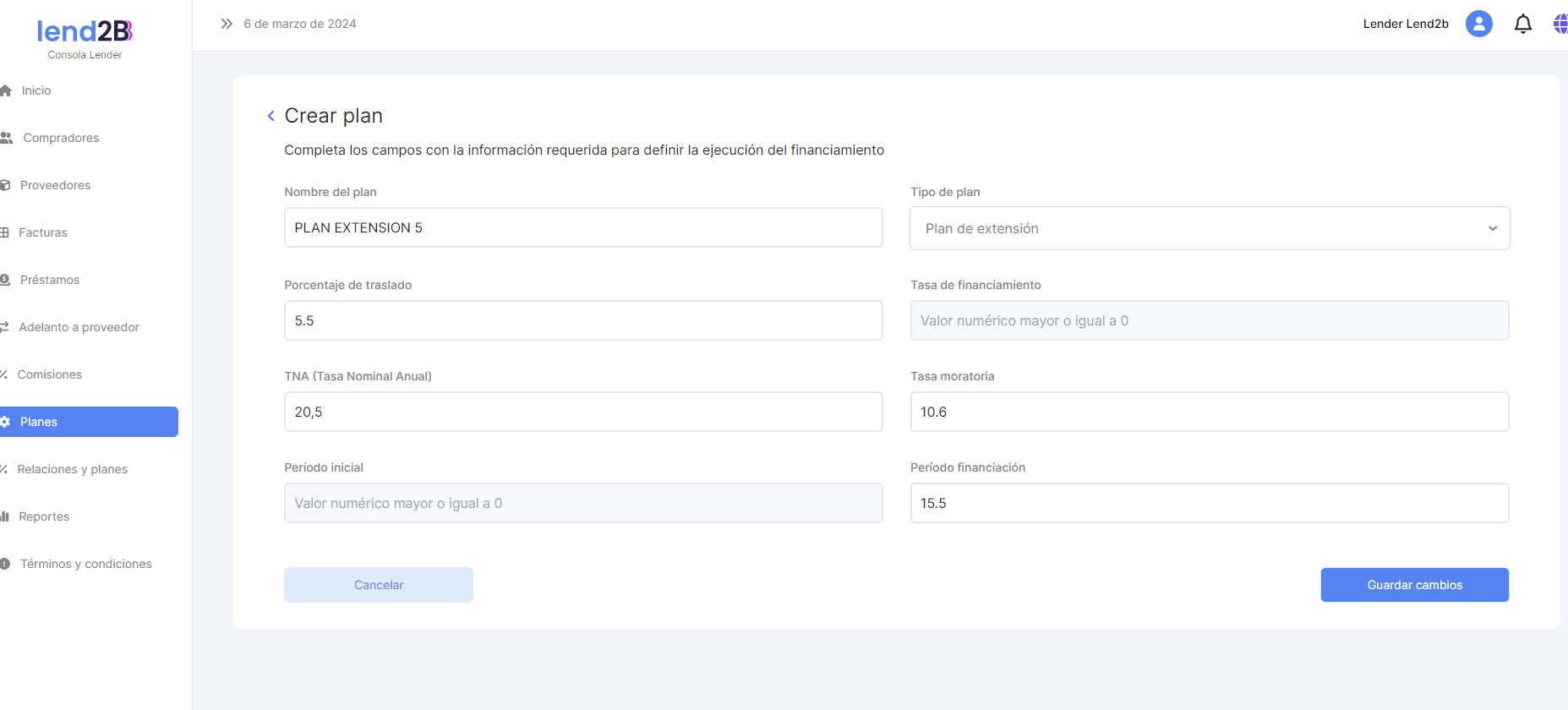 De la misma forma que se aplica las reglas para el uso de los disponibles en las Consolas de Lapachos Lending, cuando el Comprador quiere solicitar un Préstamo extendido seleccionado un Plan, el flujo de solicitud, aprobación o rechazo por parte del Lender debe estar condicionado por el impacto de la solicitud en el Disponible de la sublínea de extensiones definida para el Comprador.